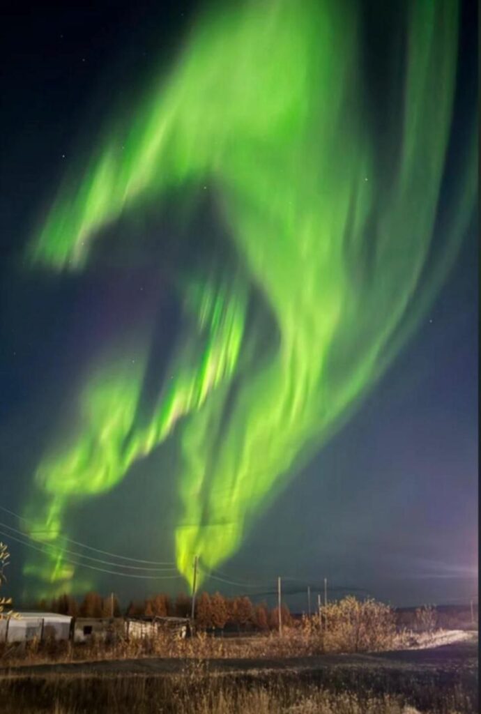 Эффектные фотографии сделали еще в Среднеколымском районе. Кадрами поделились подписчики газеты «Халыма Долгуннара» — Марина Толстова из села Березовка и Евдокия Жиркова из села Сылгы-Ыытар.