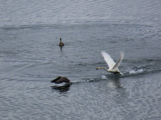 Орнитологи Мария Владимирцева и Айгуль Елизарова во время полевых исследований на территории государственного природного заказника «Кыталык» стали свидетелями необычного зрелища: малый тундровый лебедь и белолобый гусь сошлись в поединке.