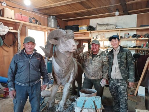На днях под руководством мастера-умельца из с. Томтор Петра Сивцева была завершена композиция, состоящая из пары чубуку — горных баранов, которая украсит вход над резиденцией Хранителя всемирного холода — Чысхаана.