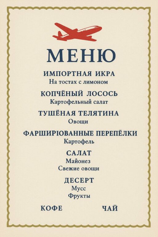 «Икра, фаршированные перепёлки и фарфор: чем угощали пассажиров в самолётах 65 лет назад»