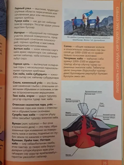 — Мы построили его по принципу географических оболочек, чтобы он логично соответствовал школьной программе по физической географии. Всего шесть больших разделов: от Вселенной («Аан дойду») до Биосферы («Тыыннаах олох тарҕаммыт бүрүөтэ»). Всего собрано и объяснено более 560 терминов. Особую ценность, на мой взгляд, представляют традиционные якутские термины, которые веками использовались нашими оленеводами, рыбаками, охотниками для точного описания природы. Многие из них запечатлены в нашей классической литературе, и мы постарались их сохранить и вписать в современный научный контекст.