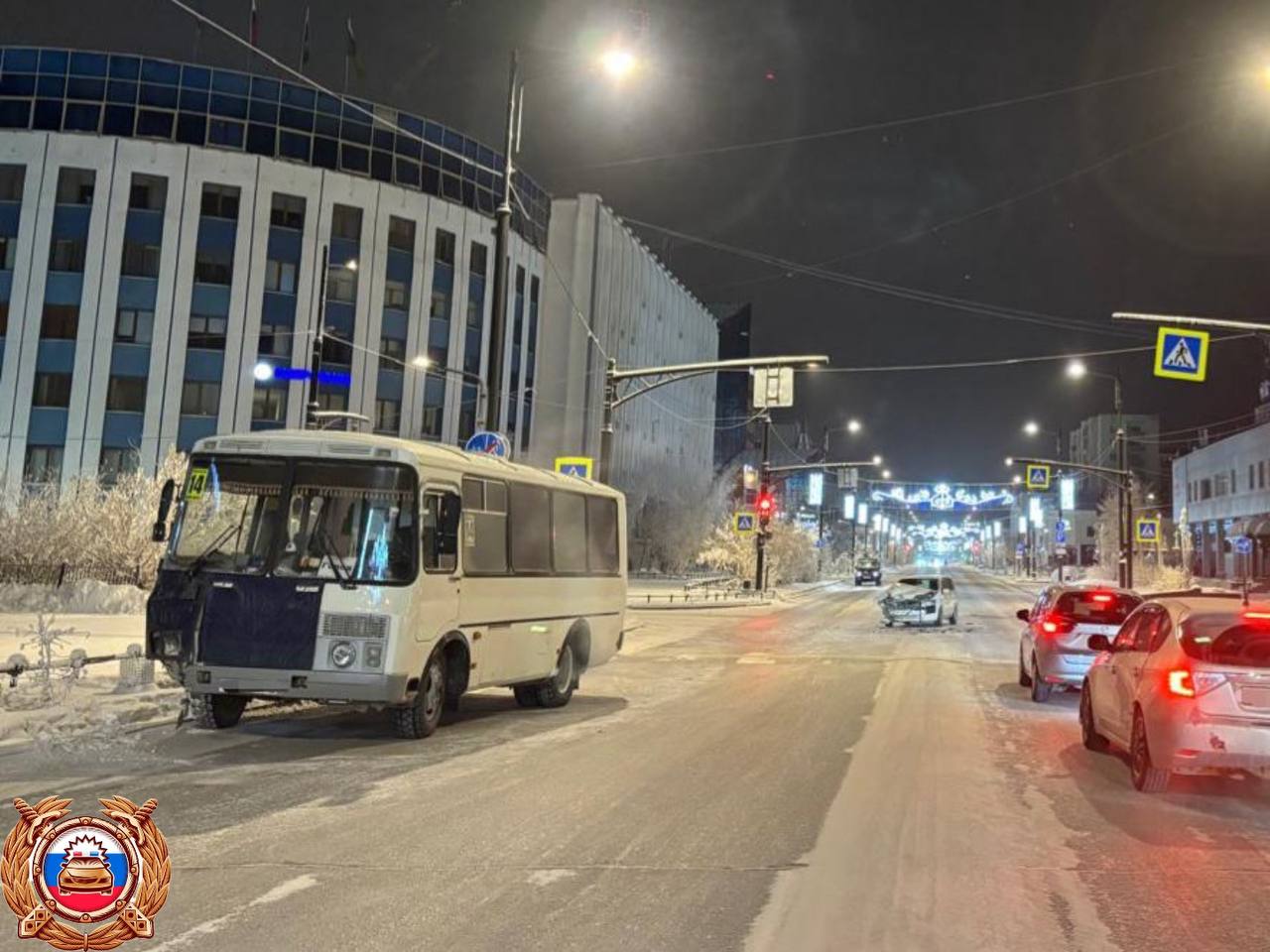 Вечером 30 ноября 35-летний водитель автобуса «ПАЗ» при повороте налево на перекрестке улиц проспект Ленина – Аммосова не предоставил преимущество в движении встречному автомобилю «Тойота Пробокс». В результате этого произошло столкновение.