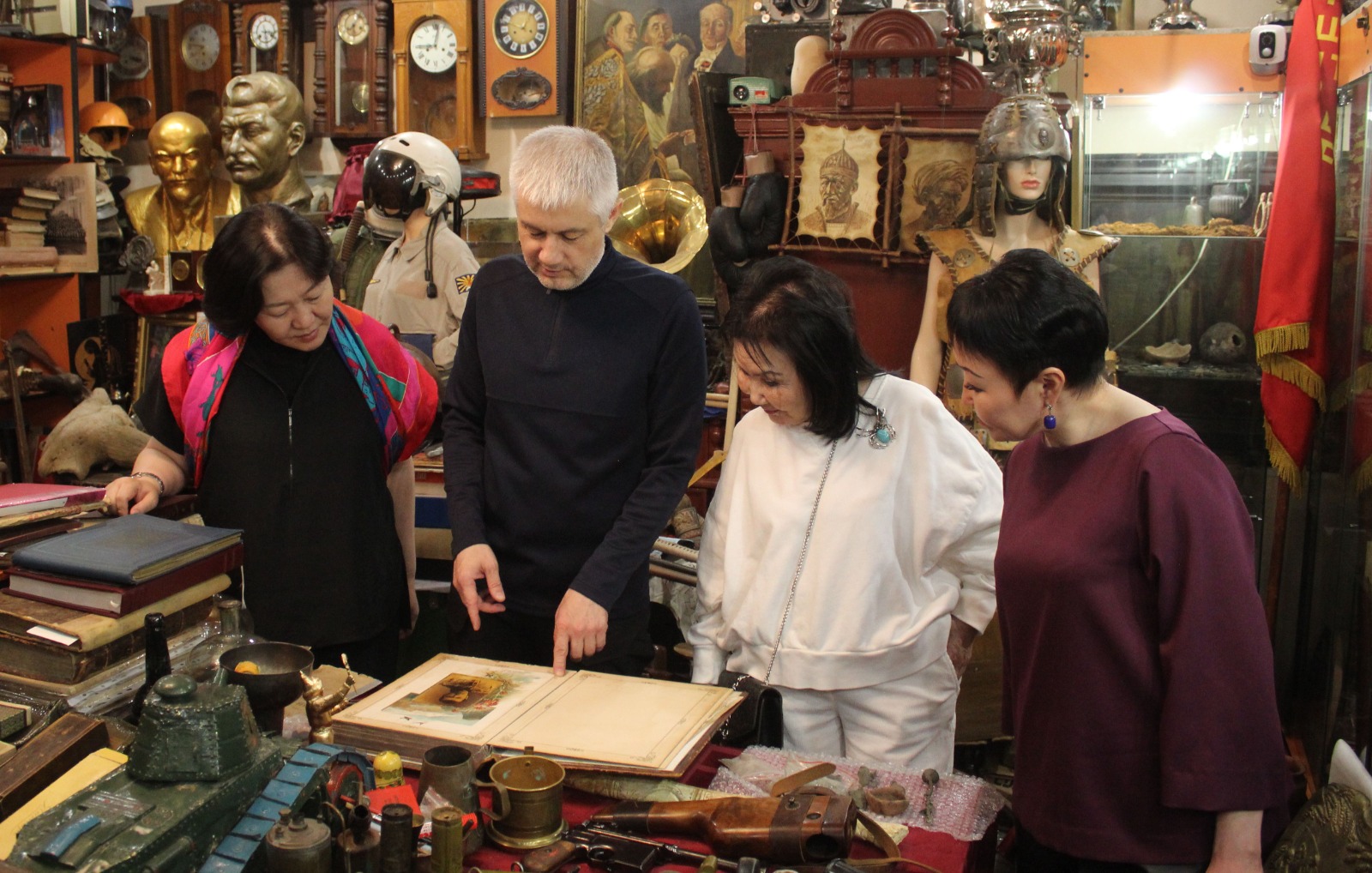 В Международный День музеев, который отмечается 18 мая, музей Александра Кошукова «Мир времени» посетили интересные гости. Это Дарья Николаевна Санникова – начальник отдела по связям с общественностью Института повышения квалификации и учителей, почётный работник общего образования РФ, заслуженный работник образования Якутии, «Учитель учителей» и Саргылана Иннокентьевна Борисова – хореограф, преподаватель дисциплин «Бальный танец», «Композиция и постановка танца», исполнительный директор Союза танцевального спорта Якутии. Вместе с президентом Федерации художественной гимнастики республики Людмилой Валерьевной Николаевой они работали на проводившемся в Нерюнгри втором этапе XII летней Спартакиады школьников России по художественной гимнастике Дальнего Востока. По окончании турнира гости Нерюнгринского района не преминули посетить одну из самых известных достопримечательностей Южной Якутии.