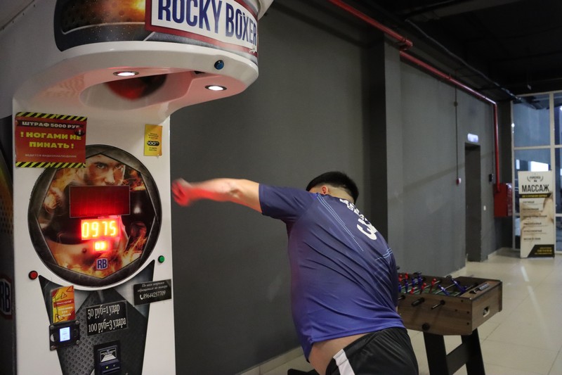 Кроме этой профессиональной спортивной пары, организаторы вечера допустили на потеху публике и других медийных персонажей – это блогер, киноактер и продюсер Алексей Михайлов-Өттүк Леха и также блогер, торговец автомобилями и запчастями к ним Роман Николаев-Авто. Так совпало, что ребята оба родом из Сунтарского улуса. Они проведут два раунда по 2 минуты. На тренировке они продемонстрировали свои возможности. Хотя оба тяжеловаты и несколько медлительны в передвижениях на ринге, но показали довольно внушительную силу ударов. На битве взглядов оба уверяют, что нокаутируют соперника в первом раунде)) В завергение они проверили силу ударов на агрегате, который стоит тут же в зале. Оказалось, что сильнее удар у левши Өттүк Лехи: его результат вы видите на снимке – 991 против 933 у Романа-Авто.