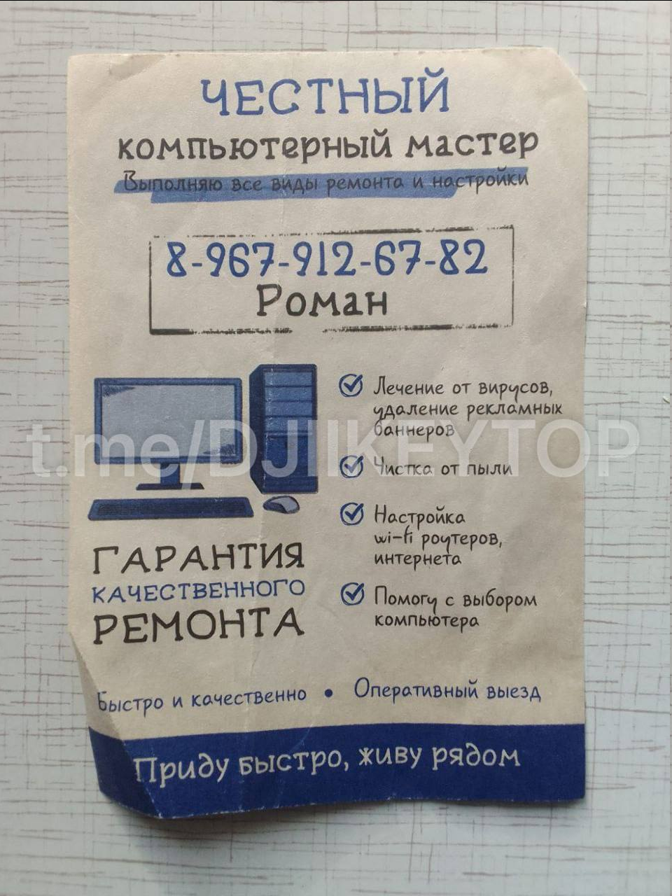 Не попадайтесь на такие уловки, не верьте рекламе, развешанной в подъездах. Такую работу лучше поручить знакомым людям, братьям или племянникам, шарящим в ПК, сообщает тгк Дьиикэй.