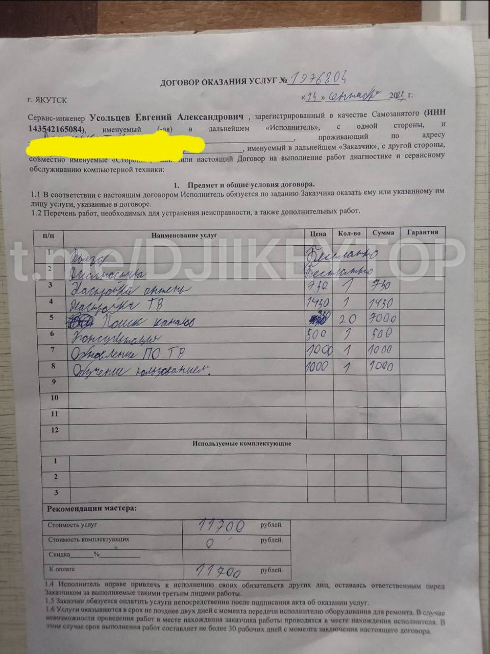 Якутяне не раз становятся жертвами ушлых настройщиков, в большинстве случаев это пожилые бабушки и дедушки, живущие одни без родственников. Как правило такие деятели выполняют рутинную работу по настройке каналов и очистке компьютера от вирусов, но в актах выполненных услуг прописывают баснословные суммы. Так, судя по договору, вышеуказанный мастер попросил 7000 рублей за одну только настройку каналов на телевизоре.