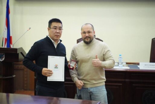 В рамках торжественной церемонии Кирилл Соболев за вклад в социально-экономическое развитие городского округа «Город Якутск», активную гражданскую позицию и многолетний добросовестный труд наградил Почетной грамотой Якутской городской Думы с нагрудным знаком «Знак признания заслуг» председателя Ассоциации советов многоквартирных домов Якутска Егора Неустроева.