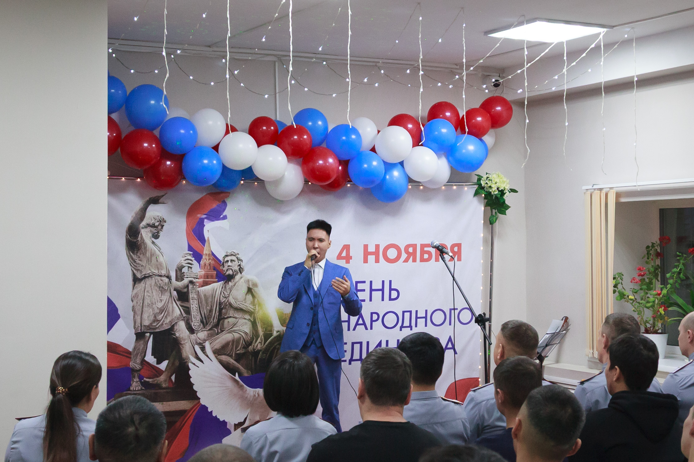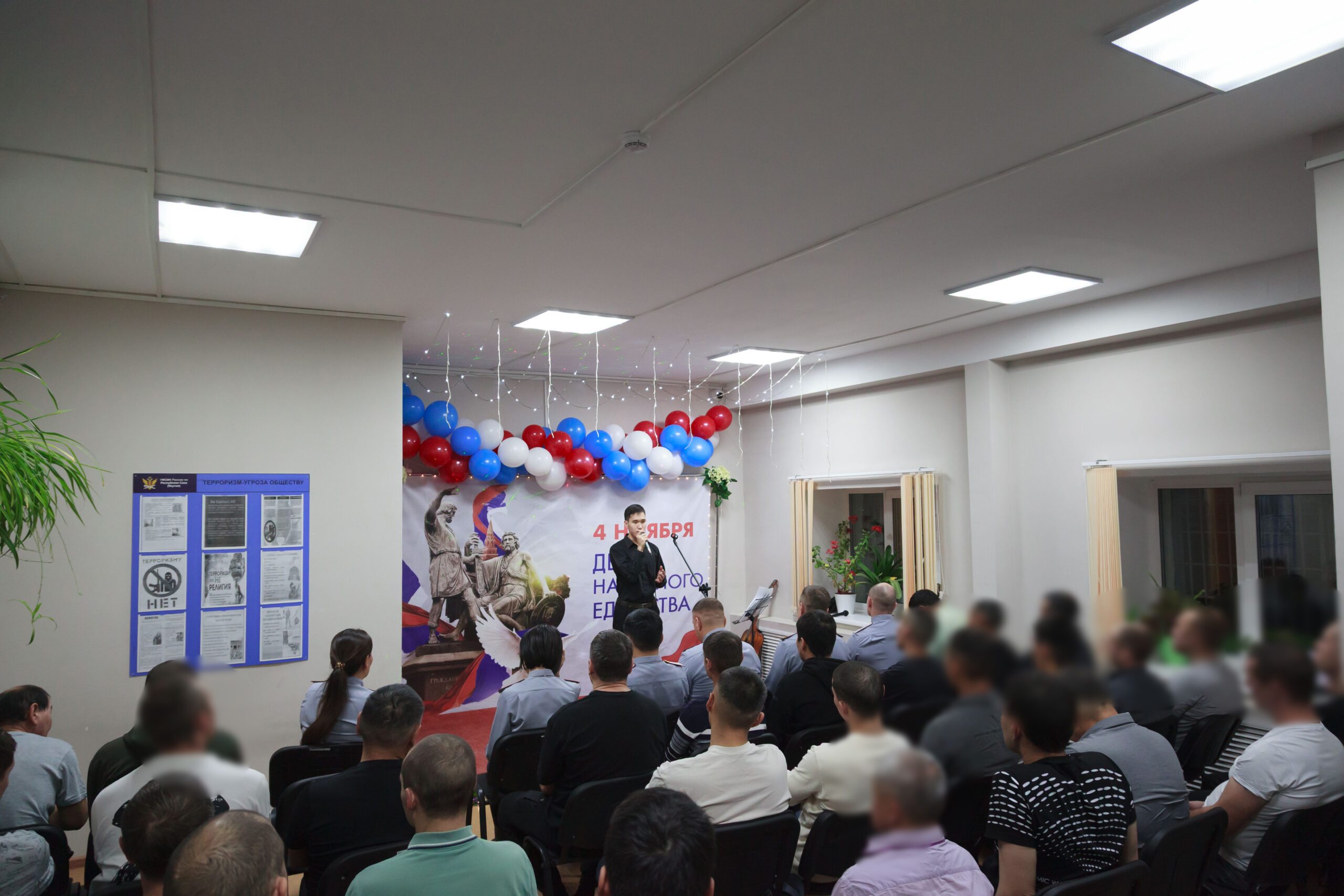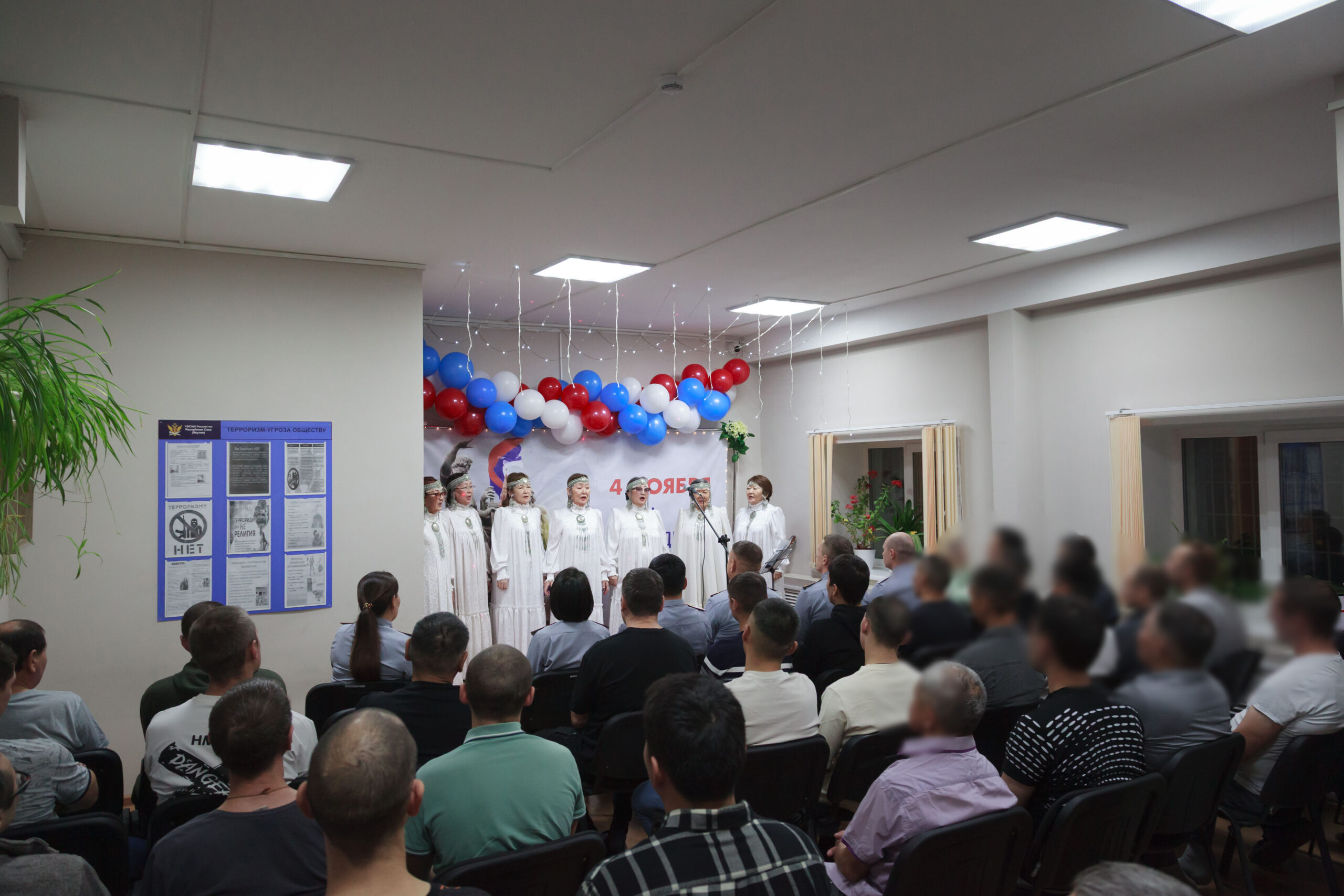 Ко Дню народного единства перед сотрудниками и осужденными к принудительным работам с песнями о единстве России и родной якутской земле выступили артисты Центра культуры и современного искусства им. Ю.А. Гагарина и студент Якутского колледжа культуры и искусств им. А.Д. Макаровой.