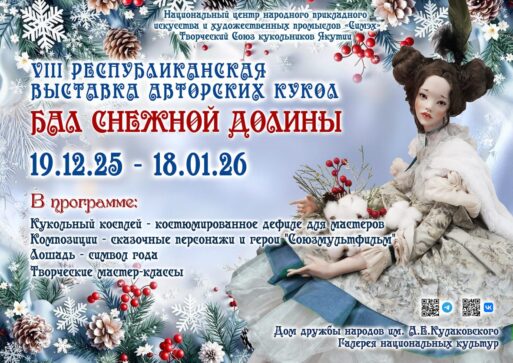 19 декабря в Галерее национальных культур Дома дружбы народов им. А.Е. Кулаковского состоится торжественное открытие VIII Республиканской выставки авторских кукол «Бал снежной долины». Начало в 16.00 ч.