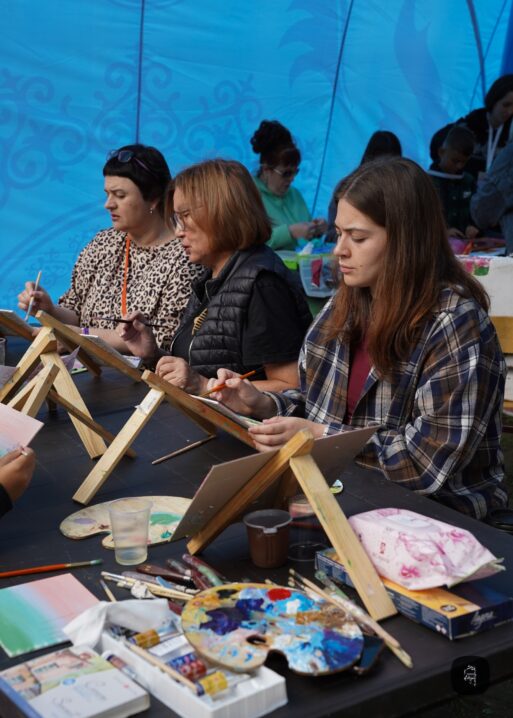 Мастер-класс Анны Ленской по рисованию оставил его участникам, взявшим в руки кисточки, масляные и акриловые краски, мелки, на память не только рисунки. Замечательные картины, получившиеся у ребят и взрослых, сканировались и отпечатывались на кружках, которые авторы получили в подарок на закрытии фестиваля.