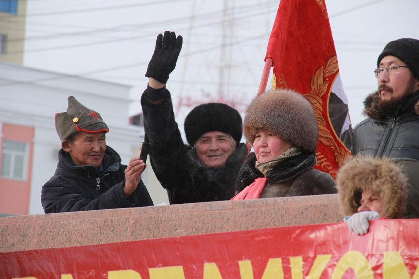 Митинг открыл второй секретарь рескома КПРФ Вячеслав Куличкин. Он поздравил собравшихся от имени председателя ЦК КПРФ Геннадия Зюганова и первого секретаря Якутского рескома КПРФ Виктора Губарева.