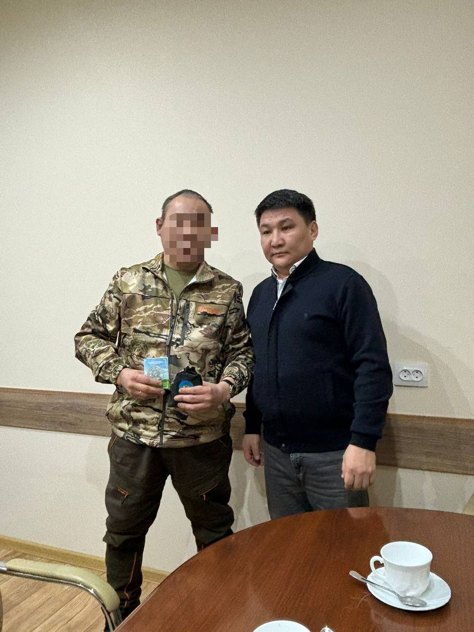 Бүгүн улуус дьаһалтатын дьиэтигэр баһылык бастакы солбуйааччыта Василий Семенов, баһылык солбуйааччыта Наталия Петрова, Ньурбатааҕы военком Николай Афанасьев Тутаны уонна кэргэнин кытта көрүстүбүт, кэккэ боппуруостары дьүүллэстибит. Үгэс быһыытынан үрүҥ көмүс харысхал, байыаһын наборун туттардылар..