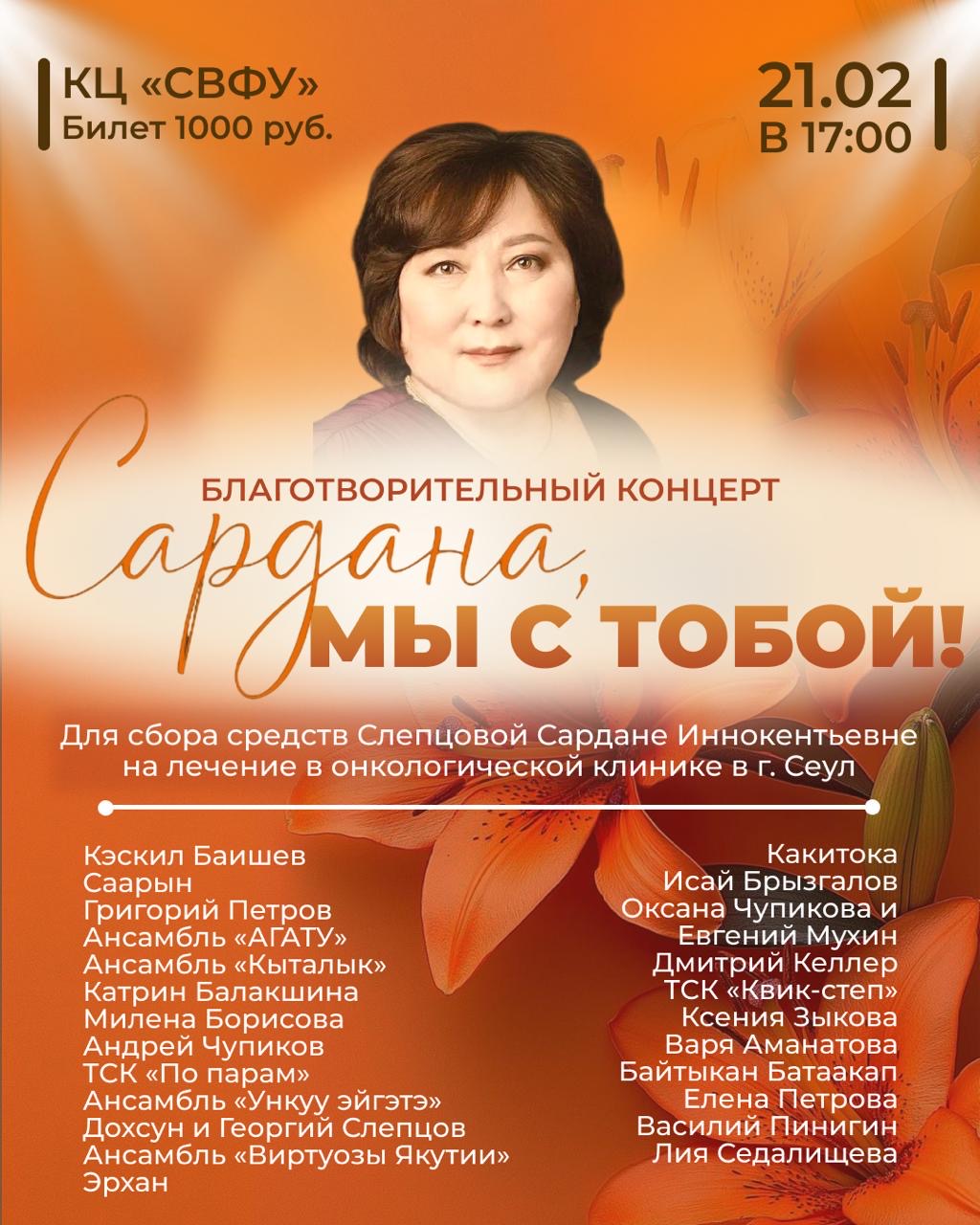 Состоится благотворительный концерт в пользу Сарданы Слепцовой