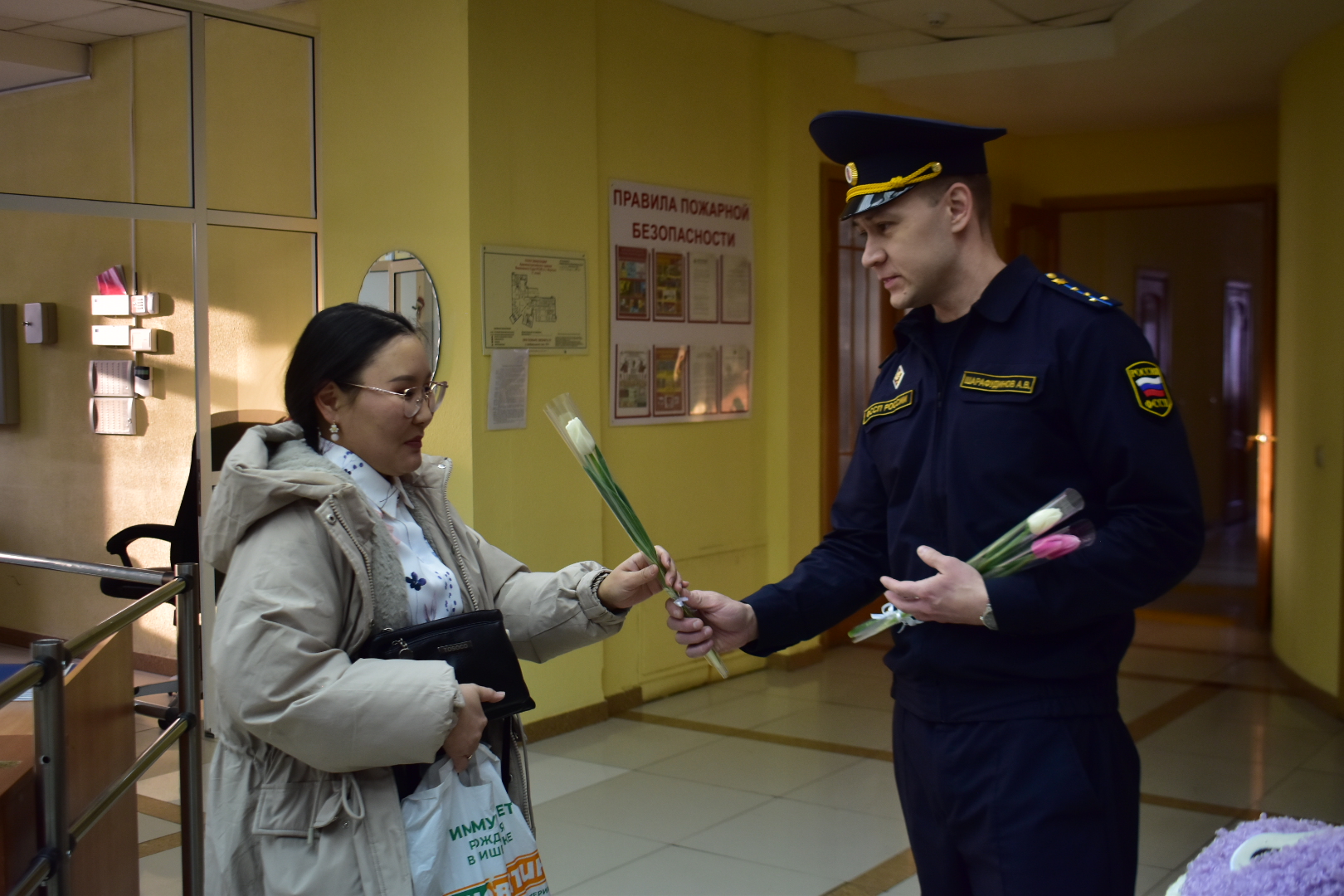 Сотрудники Аппарата Управления ФССП по Республике Саха (Якутия) и Специализированного отделения по обеспечению установленного порядка деятельности судов поздравили своих коллег. Также судебные приставы СО ОУПДС вручили тюльпаны представительницам прекрасного пола в здании Верховного суда Республики, подарив им хорошее настроение и слова признательности в честь наступающего праздника.
