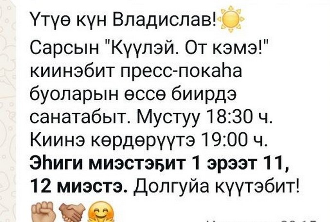Бу маны барытын этэн-тыынан туран, биир дойдулаахтарбын барыгытын “Күүлэй” киинэни кэлэн көрөргүтүгэр, төрөөбүт дойдубут умнуллубат кэрэ көстүүлэригэр умсаргытыгар ыҥырабын.