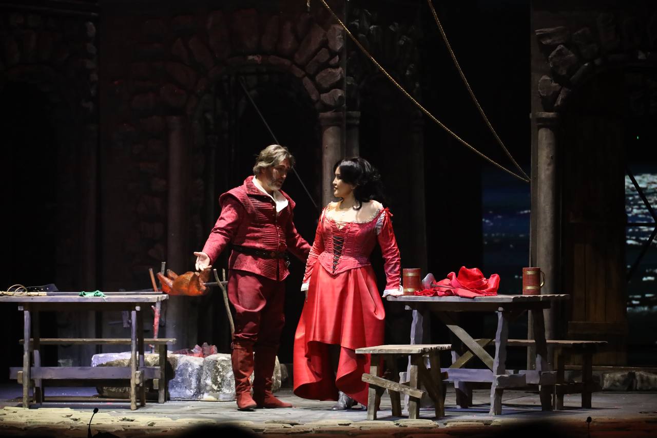 Как бы ни были хороши мужчины, но Екатерина Захарова снова затмила всех. Ее божественный голос звучал краше прежнего и бесконечное «браво», летевшее к ней на сцену со всех сторон, казалось ничтожно малым, чем можно отблагодарить артистку за счастье ее слышать. Да что говорить: чувствовалось, что и Алексей Татаринцев, исполнивший свою роль весьма и весьма колоритно, черпал силы от этого голоса — его глубины и великолепия хватило на всех.