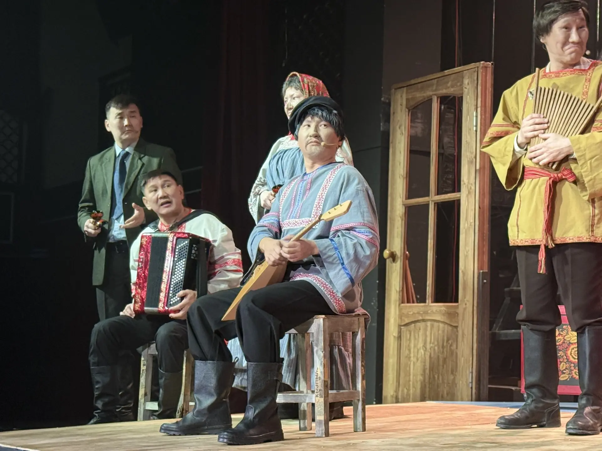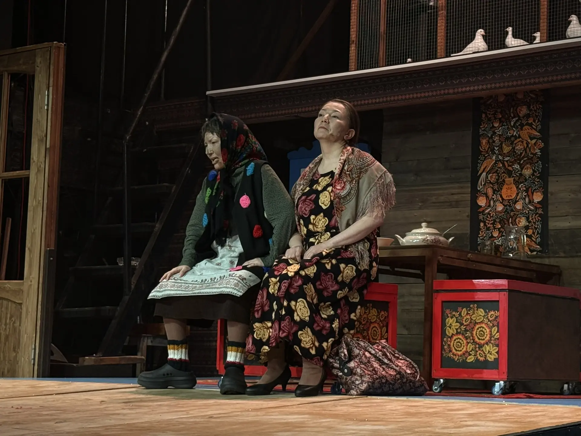 Особо хочу отметить «сладкую парочку» — эбээ Шуру и дедушку Миитээ. Боже! Как классно и филигранно сыграны Сияной и Айгылааном их непростые роли. Наша Сияна сыграла женщину, которая старше ее почти на 40 лет. Я сначала не поняла, кто вышел играть роль Шуры. Только потом я еле-еле догадалась по глазам Сияны, что это она и никто другой. Да! Гримеру пришлось ох как потрудиться! Сияна поменяла не только внешность, походку, но и голос, который стал очень по пожилому скрипучим. Это было настолько правдоподобно, настолько профессиональное вживление в роль, что просто диву даешься сколько в этой молодой женщине природного таланта и актерского мастерства!