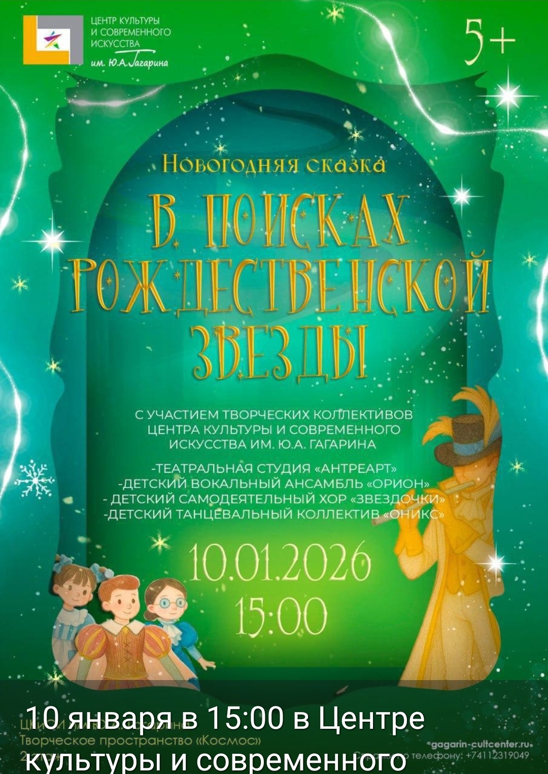 7-е место: музыкальный спектакль «В поисках рождественской звезды» Центра культуры и современного искусства им. Гагарина (директор Евдокия Винокурова), поставленный в расчёте на художественные возможности детских коллективов центра, с вокальными, танцевальными номерами и интерактивом со зрителями. Удивительно, что роли главных действующих лиц исполнили дети из театральной студии «Антре — арт», танцевального коллектива «Оникс», вокального ансамбля «Орион», детского хора «Звездочки». Это история о силе дружбы и единства, в финале которой обязательно задействованы Дед Мороз и Снегурочка. Юные артисты – искренни и артистичны. Костюмы и цифровое оформление сказки радует глаз. Посещение этого мероприятия оставило самые приятные впечатления от просмотра и легкого сожаления о том, что в ДШИ-1 и ДШИ-2 г. Якутска подобных творческих акций не наблюдала.