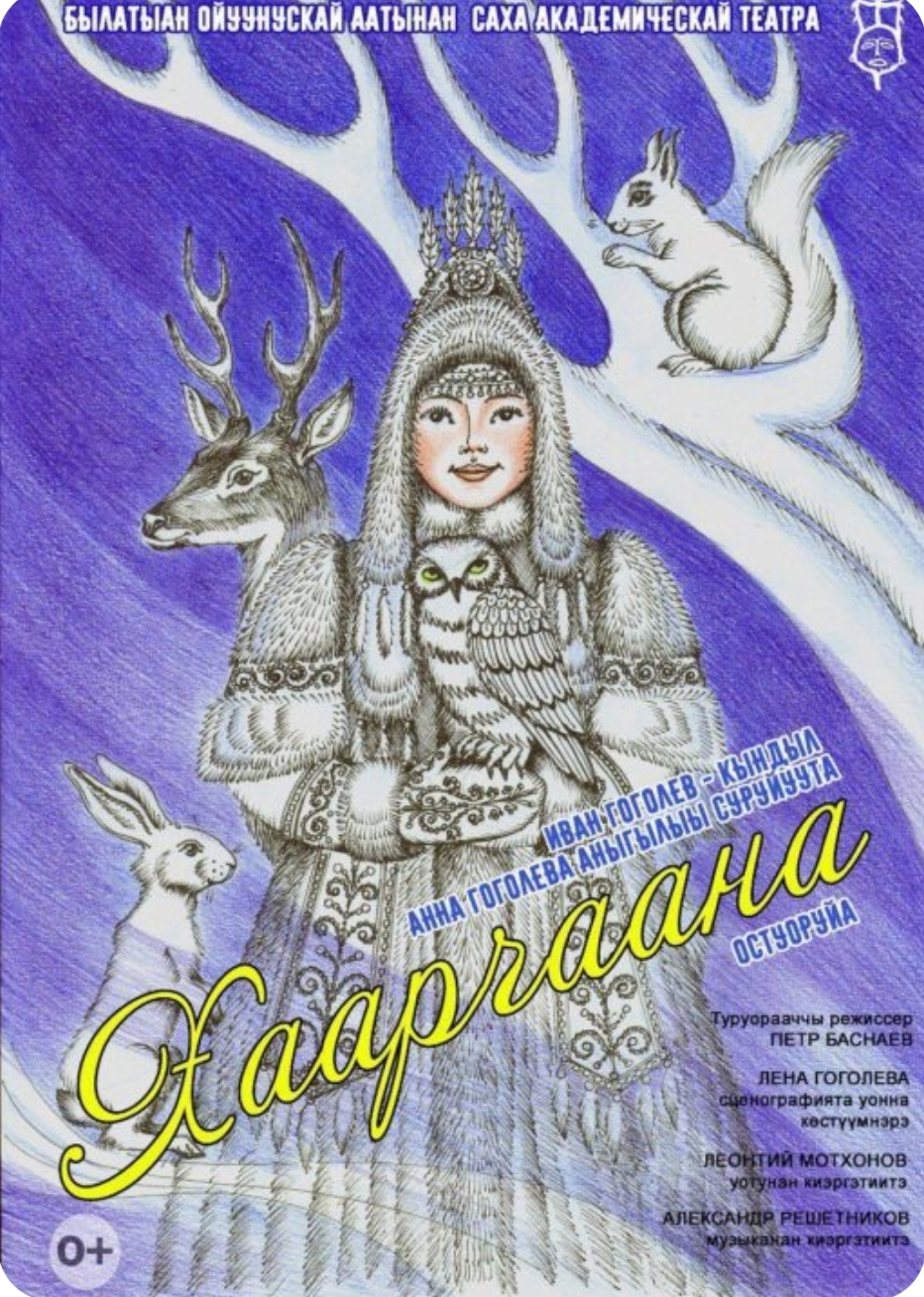 До нового года Саха театр показывал сказку «Харчаана» по классике якутской литературы — Ивану Гоголеву в современной постановке — о мальчике, который под новый год попал в лес, где нет компьютеров и интернета, но живут птицы, волшебные звери и Дед Мороз со своей доброй и умной внучкой Харчааной, которая учит школьника доброте.