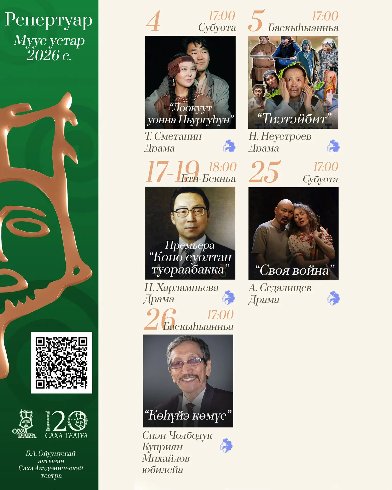Саха театрын муус устар ыйдааҕы репертуара