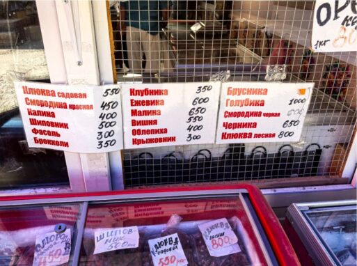 Брусника — 650р/кг, малина — 650р/кг, клубника — 350р/кг, облепиха — 350-400р/кг