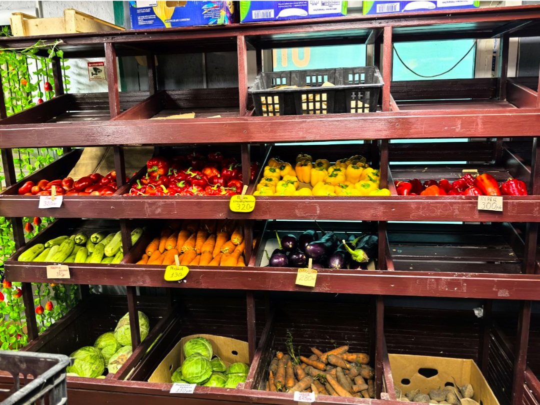 Огурцы — 180р/кг, помидоры — 240-300р/кг, капуста — 150р/кг, перцы — 250-300р/кг, баклажаны — 350р/кг
