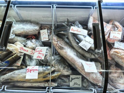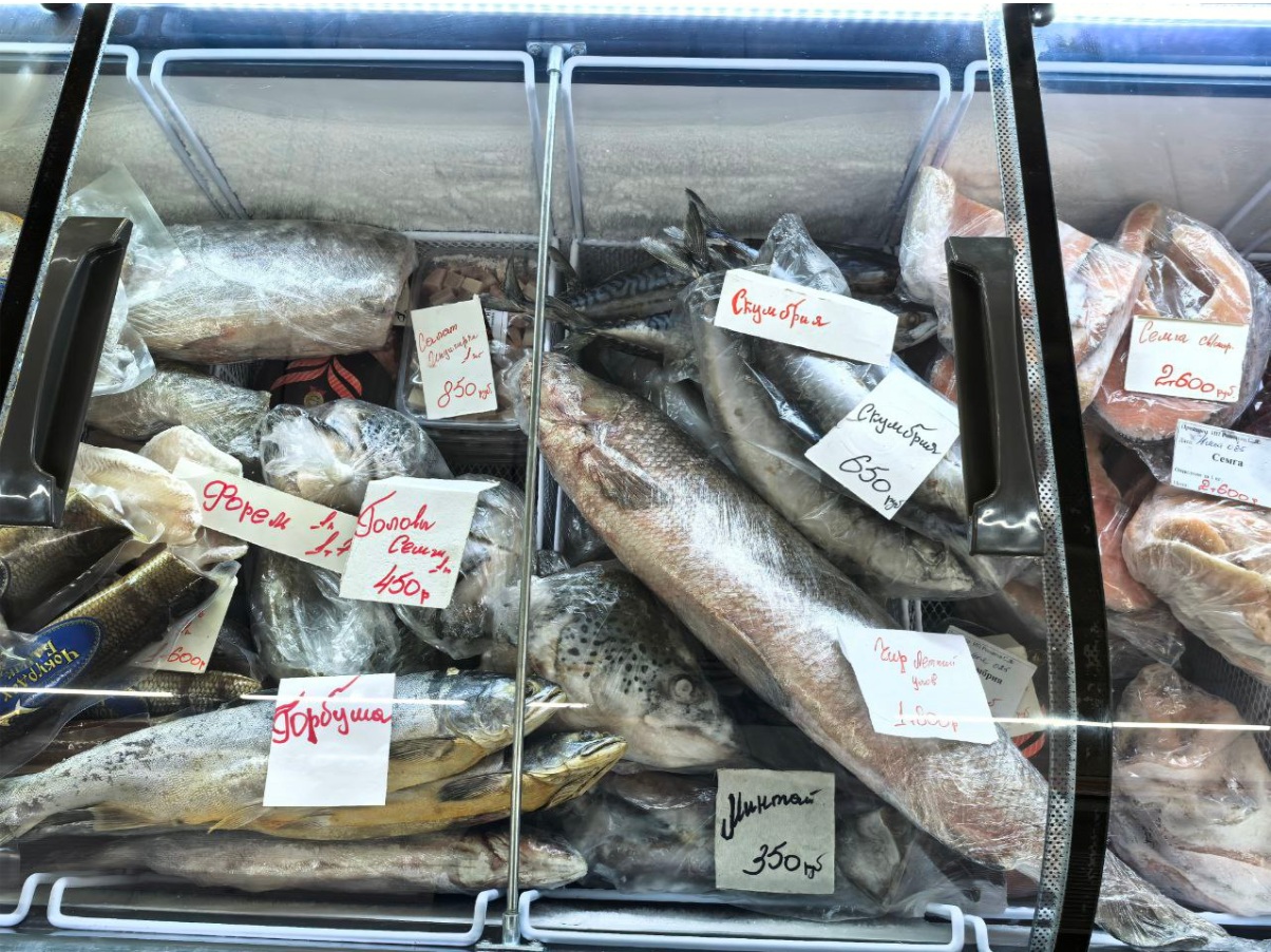 Минтай — 299р/кг, форель — 1470р/кг, семга- 1850р/кг
