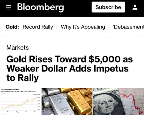 «Новые нападки президента Дональда Трампа на ФРС, военное вмешательство в дела Венесуэлы и угрозы аннексировать Гренландию придали дополнительный импульс «торговле обесцениванием», в рамках которой инвесторы отказываются от государственных облигаций и валют в пользу альтернативных активов, таких как золото», — подчёркивает Bloomberg