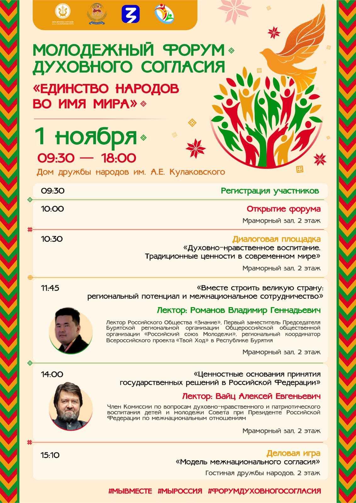 О ФОРУМЕ: Форум направлен на укрепление межнационального и межконфессионального согласия среди молодежи города Якутска, продвижение традиционных духовно-нравственных ценностей Российской Федерации и взаимопонимание путем духовного обогащения и совместной деятельности.