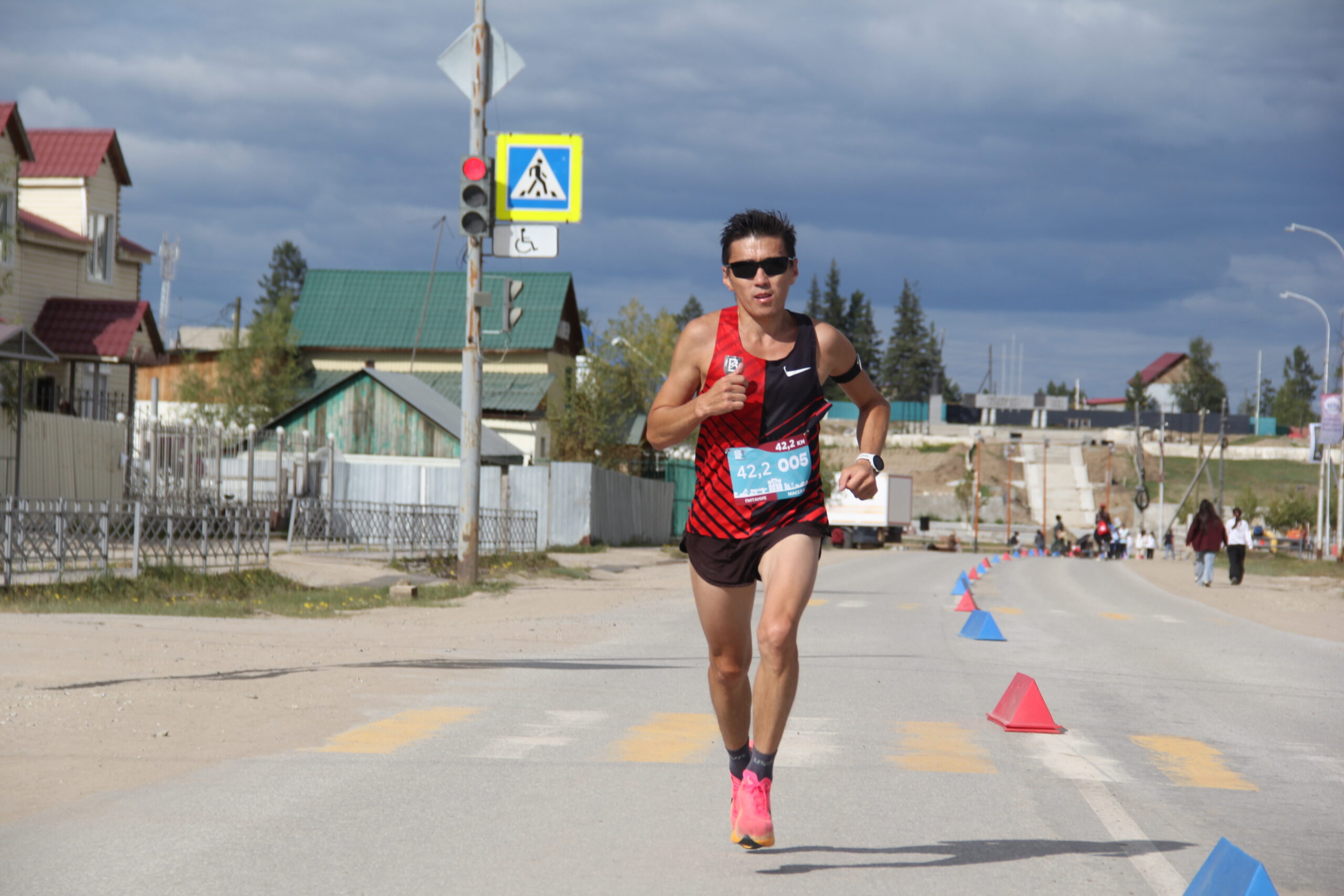Между тем, на марафонской дистанции произошли несколько неординарные события. Так, многие считали, что победителем среди мужчин станет Константин Драгунов (стартовый номер 001), уроженец мегинской земли, представитель беговой семьи, старший сын известной легкоатлетки Екатерины Драгуновой. К слову, на дистанции 5 км среди мужчин (!) победителем стал его младший брат, Эрчимэн (18 мин. 28,814 сек). В забеге на дистанции 1000 м также участвовал и Мичил, четвертый сын спортивной семьи и борец по “основной специальности”, к сожалению, стал четвертым. Сама Екатерина (№ 006) победила в беге на 5 км в группе женщин 51-60 лет (22 минуты 24,815 сек) и показала третий результат в абсолютном первенстве среди женщин.