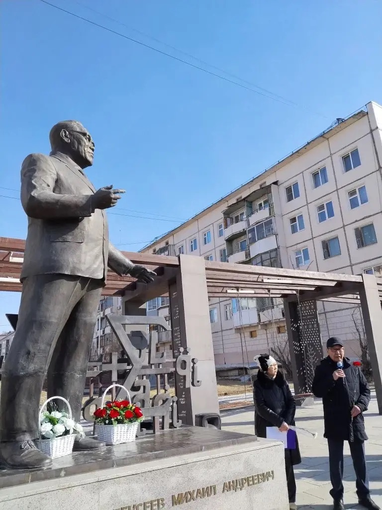 Олег Филиппов, к.п.н., выпускник знаменитой Верхневилюйской физико — математической школы, председатель Ассоциации выпускников школы М.А.Алнексеева, ученик Михаила Анлреевича Алексеева: «Памятник М.А.Алексееву олицетворяет всех советских учителей, которые, не считаясь с трудностями, саммоотверженно трудились в деле воспитания и обучения детей. Михаил Андреевич всю свою жизнь посвятил обучению будущих инженеров для работников промышленности Якутии. Пусть ежегодное возложение цветов памятнику станет хорошей традицией Института».