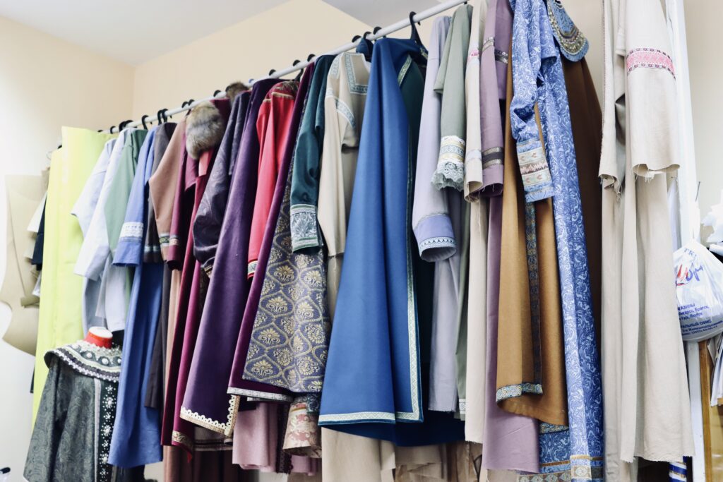 Огромная работа была проделана художником по костюмам Евдокией Сотниковой и сотрудницами пошивочного цеха театра. Сшито более 80 костюмов: большая часть славянские – платья, рубахи, плащи, с детальной ручной вышивкой, расшитые имитацией драгоценных камней, монгольские костюмы, для которых были закуплены натуральные монгольские ткани с набивным шелковым орнаментом, мех. Специально для спектакля создавались десятки облегченных сценических кольчуг, шлемы, латы, нарукавники, обувь.