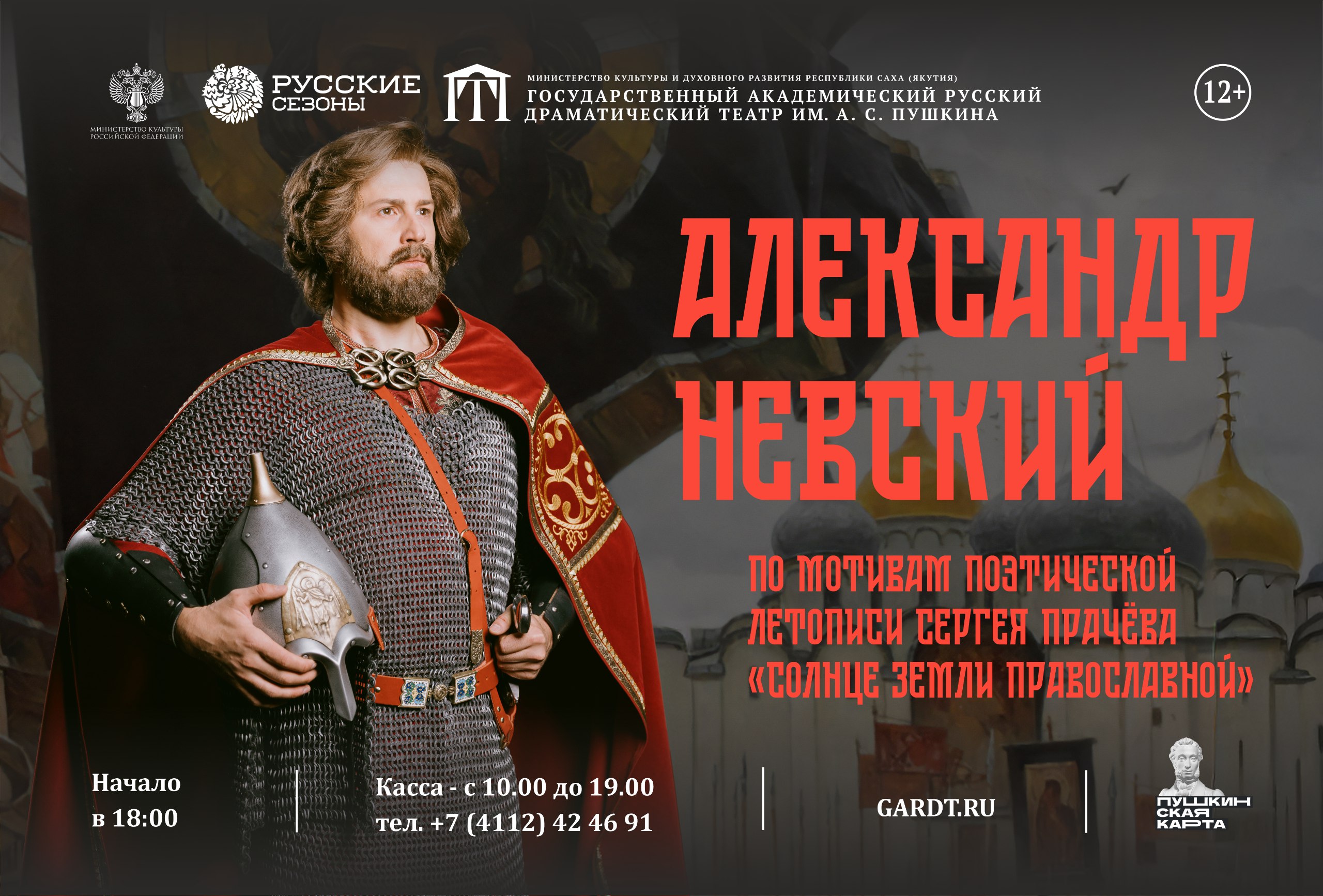 За основу взята поэтическая летопись Сергея Прачёва «Солнце Земли Православной». Режиссер спектакля — главный режиссер Русского театра Андрей Габышев. По его словам, прикоснуться к судьбе великого святого Александра Невского большая честь и ответственность для всего коллектива театра. Спектакль поддержала Якутская епархия, перед началом работы состоялась встреча с Владыкой Романом, который благословил коллектив на работу.