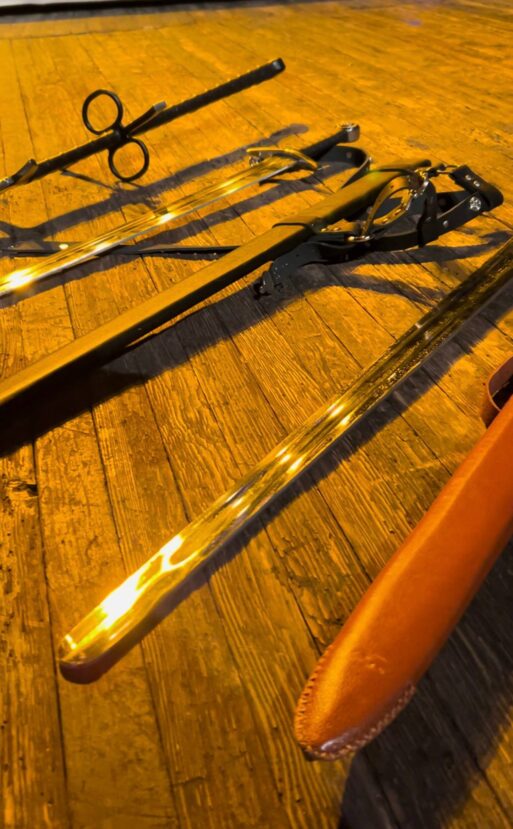 В спектакле «Александр Невский» будет обилие боевых сцен, их постановку осуществляет директор – художественный руководитель театра Александр Лобанов. По его словам, для спектакля, благодаря федеральному гранту, закуплено несколько десятков единиц сценического облегченного оружия, которое внешне выглядит точь-в-точь как настоящее, оно удобное, относительно легкое, т.к. с его помощью артистам предстоит создавать достоверную имитацию реального боя, с трюками, махами, ударами. Все это оружие средневекового образца. Используются длинные мечи каролингского типа, которыми будут вооружены Невский и его дружинники, романские мечи, боевая версия которых могла пробить латы, доспехи, ими будут вооружены тевтонцы. Также в их вооружении будут большие полутораметровые двуручные мечи с фальшгардой. А вот монголы будут вооружены чуть изогнутыми саблями покороче двух видов. В боевых сценах будет принимать участие почти вся мужская часть труппы.