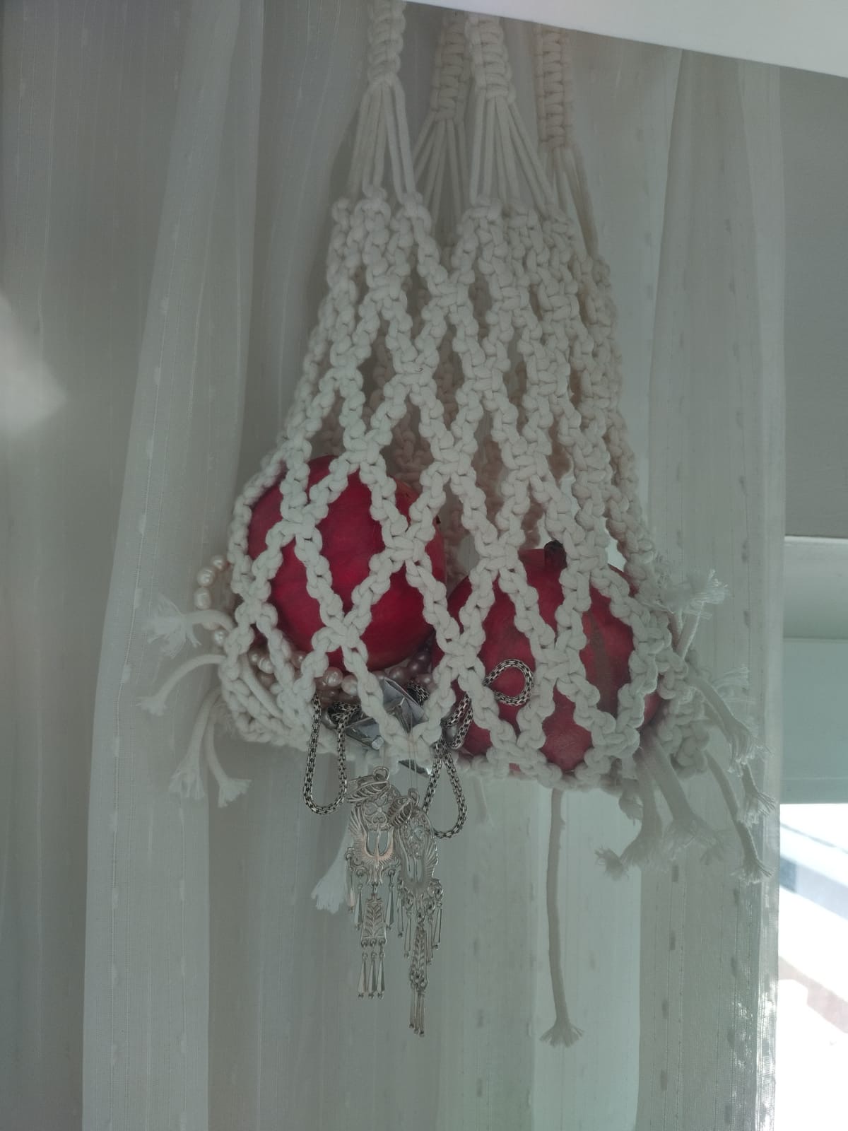 Гранат висит, пока он свежий. Следите за содержимым мешочка.