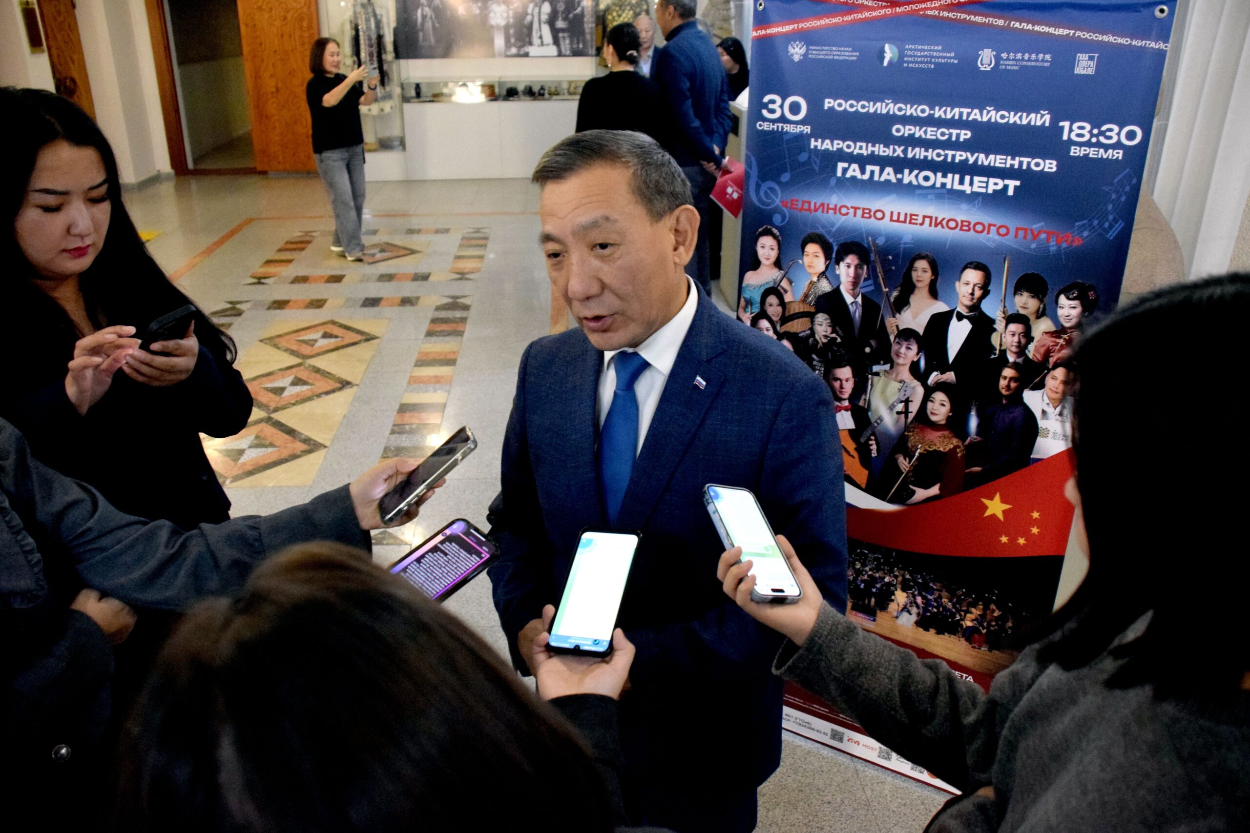 30 сентября в Театре оперы и балета Якутии состоялся гала-концерт «Единство Шёлкового пути» с участием Российско-Китайского оркестра народных инструментов. На одной сцене выступили лауреаты российских и международных конкурсов из разных городов России, а также делегация артистов Харбинской консерватории во главе с ректором Сун ФЭЙ, обладательницей премии «Золотая пластинка». Такое объединение придало событию особый международный масштаб и подчеркнуло значимость культурного сотрудничества России и Китая.