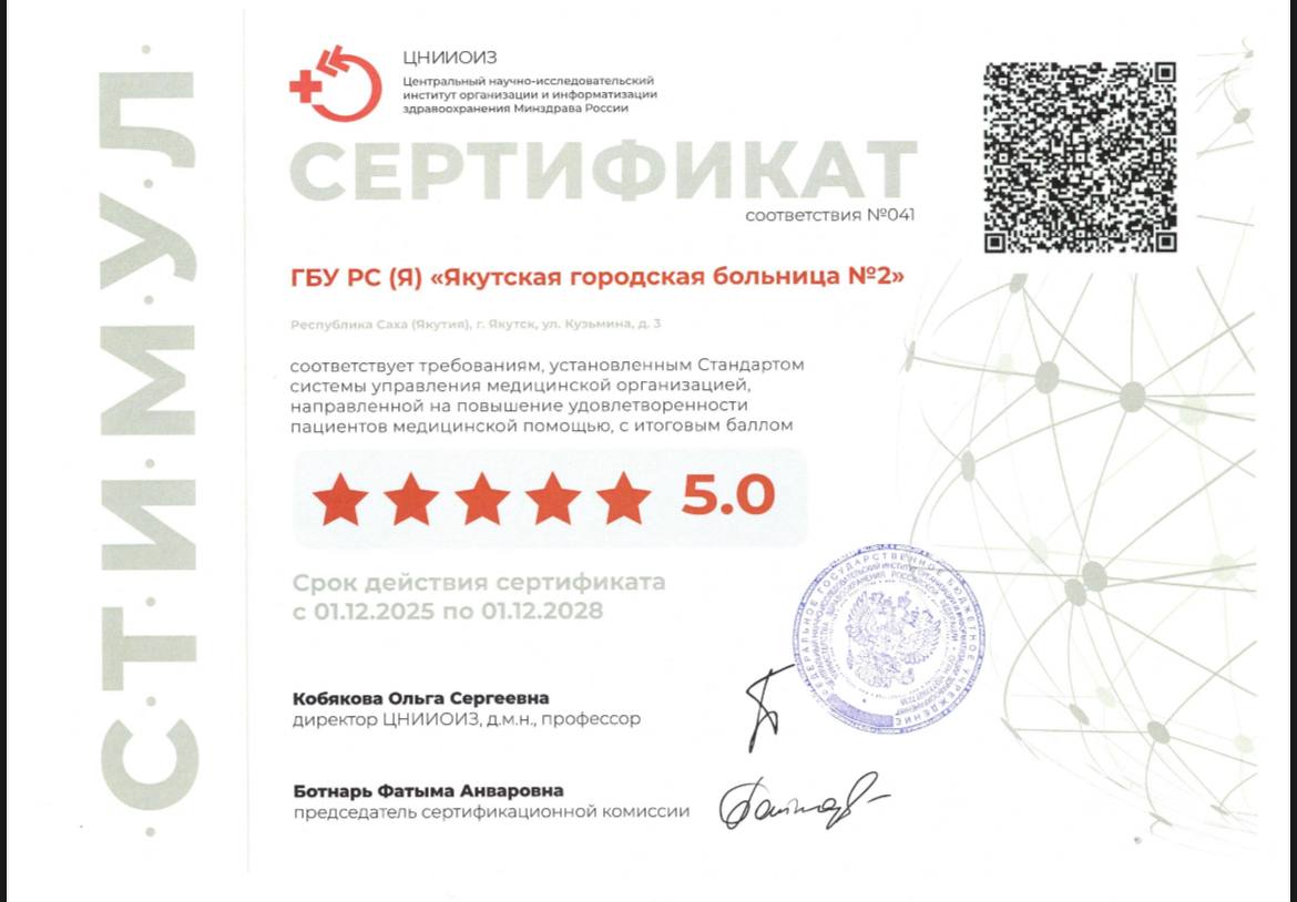 2025 год стал по-настоящему прорывным для Якутской городской больницы №2, годом масштабного развития, глубоких преобразований и заслуженного признания. Все эти достижения – результат слаженной работы всего коллектива, приверженности принципам качества, доступности и искренней заботы о каждом пациенте. Мы продолжаем развиваться, внедряя лучшие практики и самые современные технологии, чтобы каждый пациент мог получать высококлассную медицинскую помощь на уровне высоких стандартов.