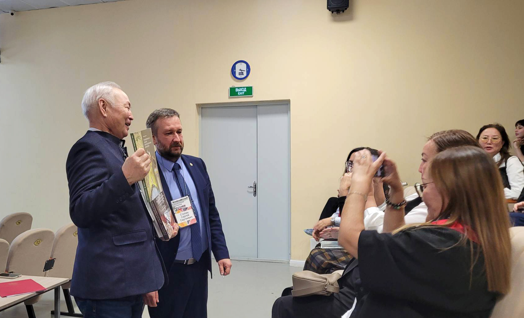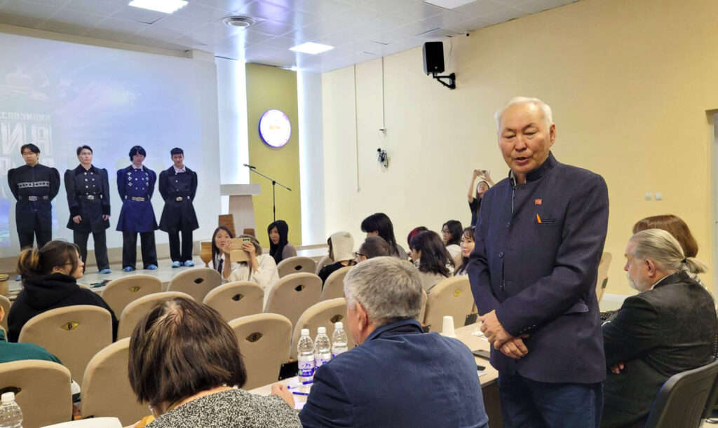 На пленарной сессии выступили директор ЯХУ Кирилл Гаврильев, народный художник РС(Я), заслуженный деятель искусств РС(Я), представивший свое выступление через призму юбилейных дат страны и училища.
