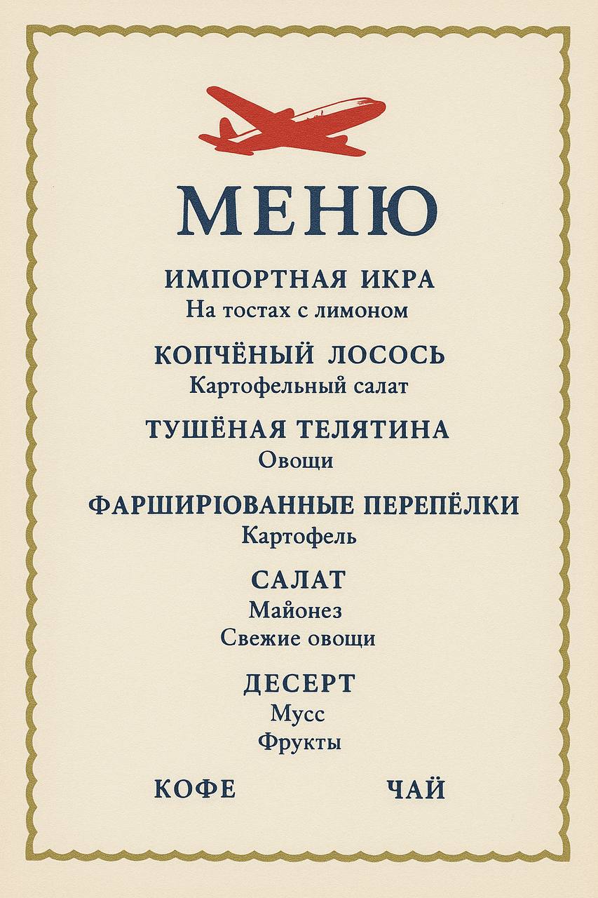 Сегодня бизнес- и первый класс иногда стараются вернуть ту самую «золотую роскошь» прошлого века — с кристальными бокалами, авторскими блюдами и внимательным сервисом. Но для большинства пассажиров воспоминания о воздушных застольях 65-летней давности остаются лишь частью красивой истории.
