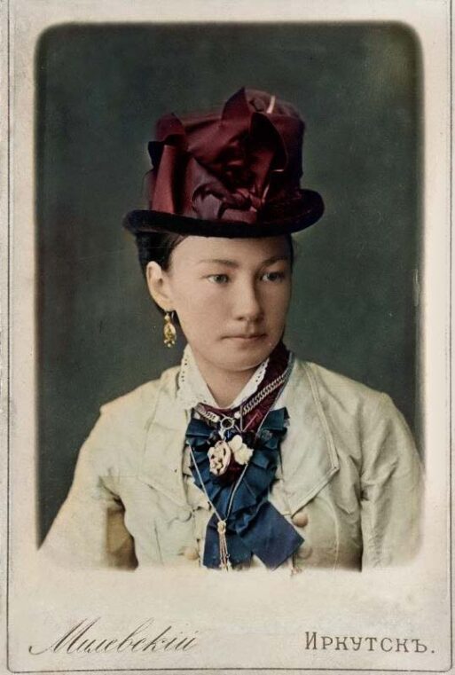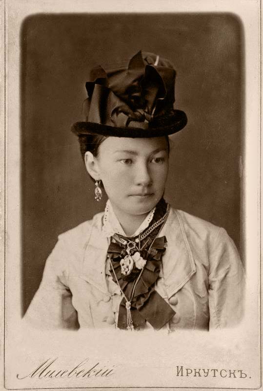 Вот пример того, как бывали обставлены торжественные встречи высокопоставленных гостей (фотография сделана не ранее 1897 года). У причала стоят пароход «Алдан» и баржа № 1. Приезд любого иркутского генерал-губернатора всегда был большим событием, так, например, 5 июля 1886 года граф А. Игнатьев с членами своей семьи прибыл в г. Якутск на пароходе «Генерал Синельников». Встречали высокого гостя самые уважаемые представители якутской интеллигенции и купечества [6]. 3 июля 1890 г. в Якутск на пароходе «Генерал Синельников» (позднее пароход был переименован в «Граф Игнатьев» [7]) прибыл иркутский генерал-губернатор А.Д. Горемыкин со своей семьей (жена, дочь и сын). Генерал-губернатор с 3-22 июля произвел ревизию местных учреждений и смотр Якутской местной команды и команды казаков Якутского казачьего городового полка. Присутствовал с семейством на Божественной литургии в соборе, в Никольской церкви и посетил реальное училище. Вечером 6 июля в здании Общественного Собрания был организован танцевальный вечер [8]. На подобном танцевальном вечере могла быть и Анна Степановна Захарова (см. ниже фотографию А.С. Захаровой). Так по воспоминаниям одного из потомков Петра Захарова: «…Анна Степановна Захарова была известной красавицей и имела честь быть приглашенной на танец (вальс) самим Иркутским губернатором, который приезжал с визитом в г. Якутск…» [9].