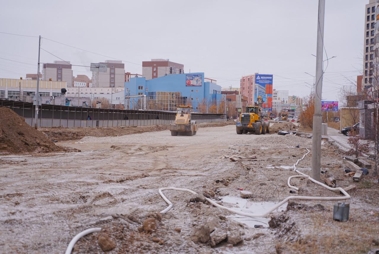 На сегодняшний день по улице Ойунского завершены работы по укладке водопропускных труб и футляров для инженерных сетей на участке от ул. Дежнева до ул. Петровского. Завершены работы по укладке верхнего слоя асфальта от ул. Дежнева до ул. Каландаришвили. От «Сайсарского моста» в сторону улицы Каландаришвили ведутся работы по укладке бортовых камней и тротуарной плитки.