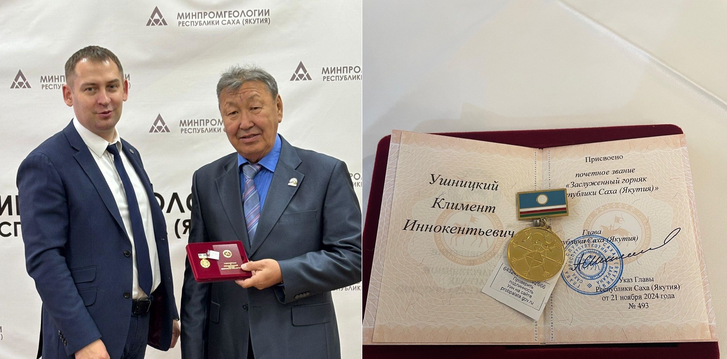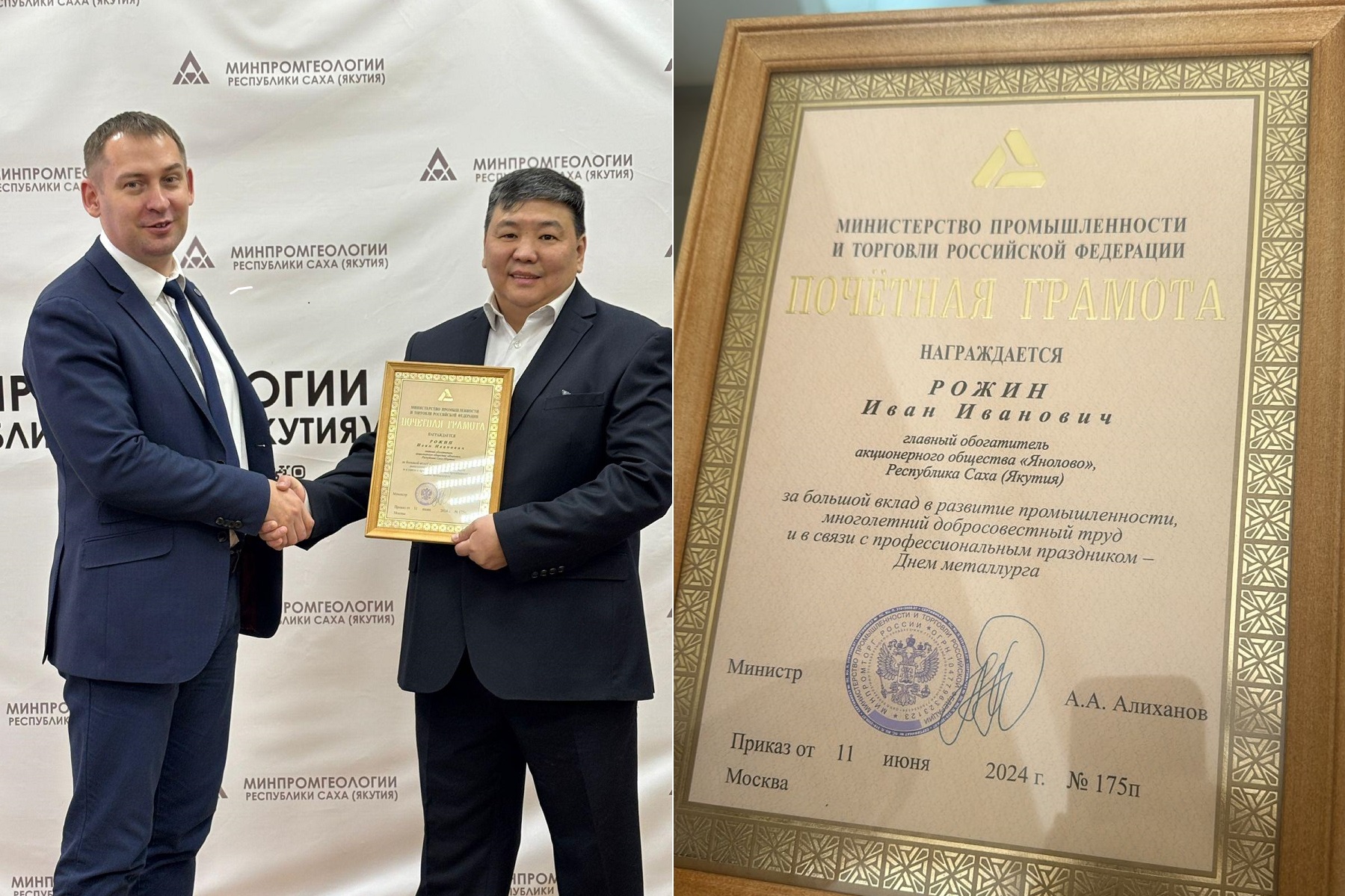 Начальник участка ООО «Янзолото» Климент Ушницкий награжден Почетным знаком «Заслуженный горняк Республики Саха (Якутия)», главный обогатитель АО «Янолово» Иван Рожин – Почетной грамотой Министерства промышленности и торговли Российской Федерации.