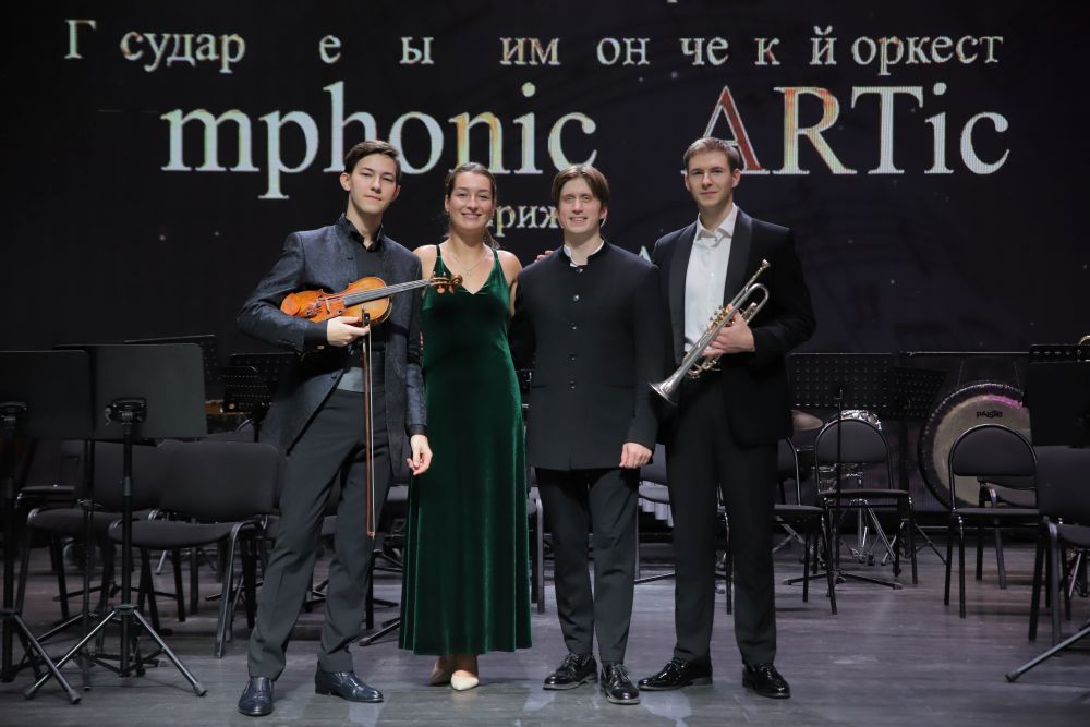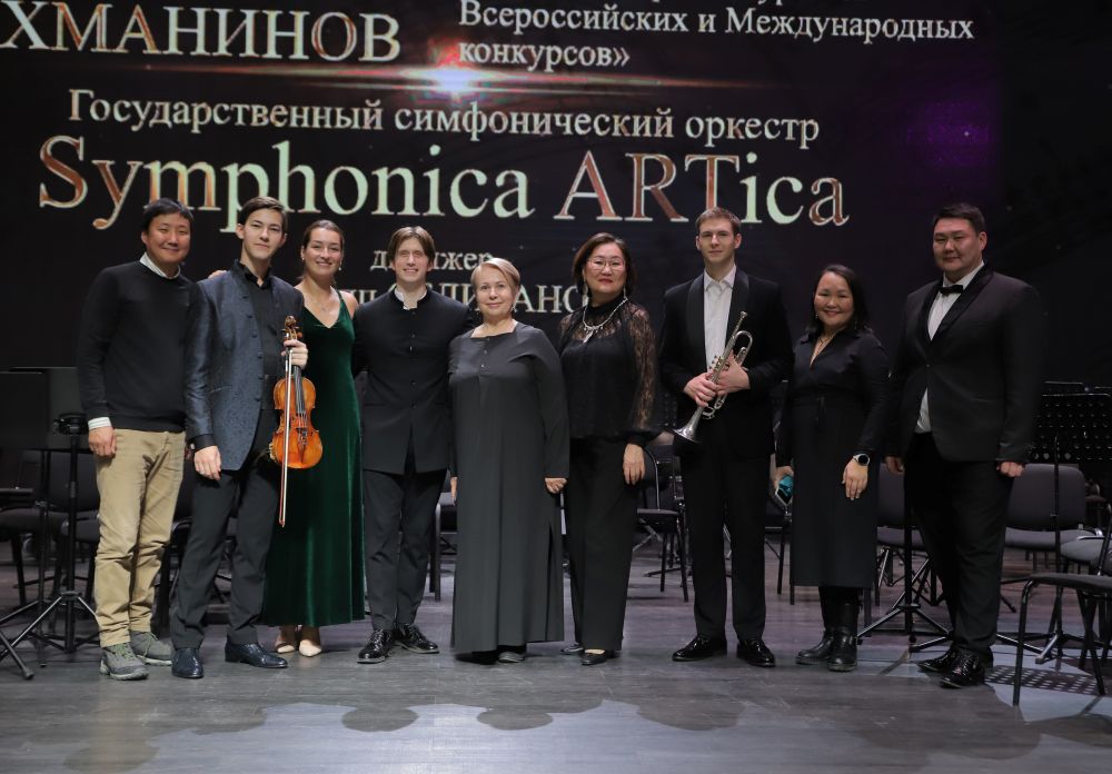 Сразу четыре ярких, молодых музыканта: София Виланд (флейта), Семён Саломатников (труба), Равиль Ислямов (скрипка) и дирижер Филипп Селиванов выступили вместе с Государственным симфоническим оркестром Symphonica ARTica Филармонии Якутии на сцене Центра культуры и современного искусства имени Юрия Гагарина.