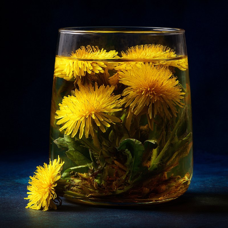 1. Берём листья, корни и цветки одуванчика и делаем сок.