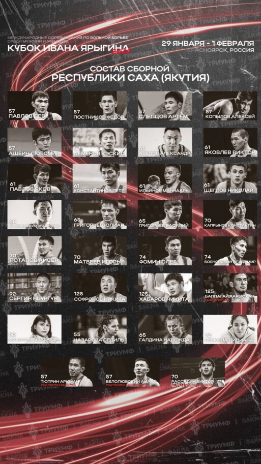Обновленный список сборной Республики Саха (Якутия) на «Кубок Ивана Ярыгина»