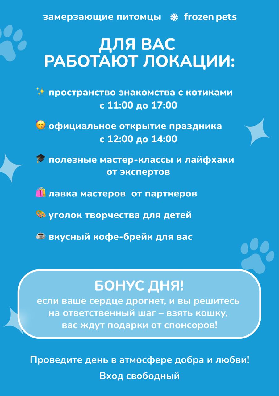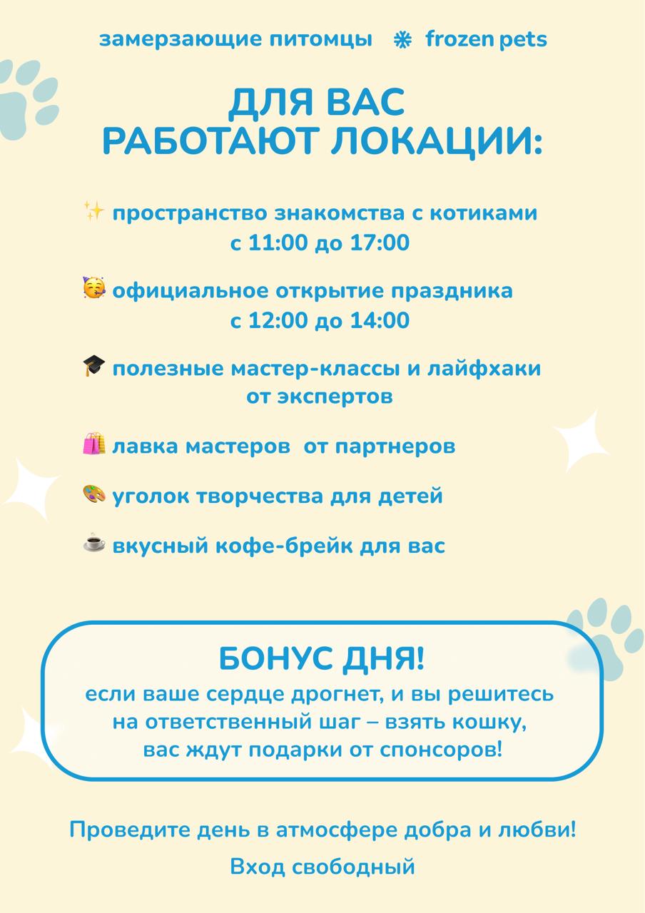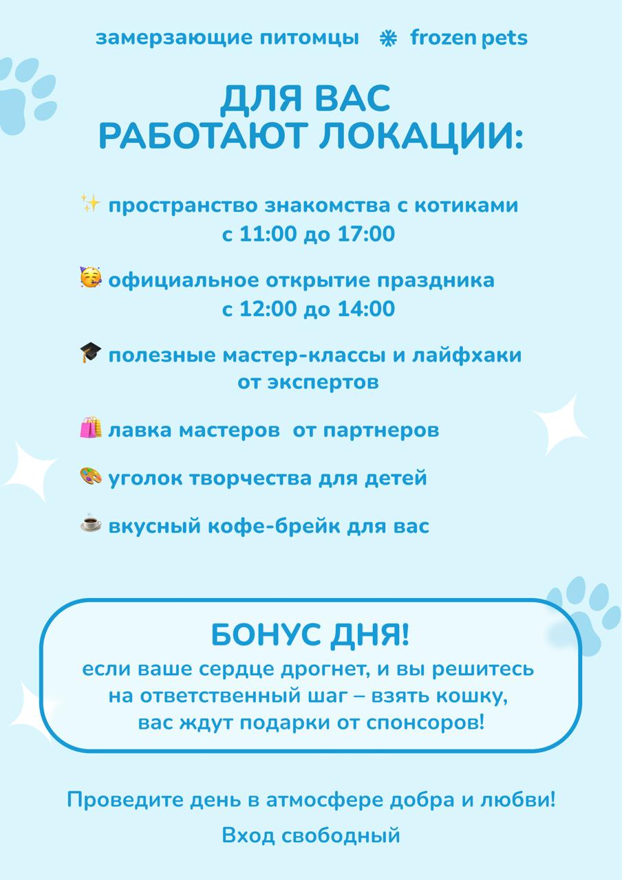 14.03.2026 в Квартале труда Якутска, по адресу Квартал труда 1, социальный проект Frozen pets совместно с приютом «4 лапки» проводет ярмарку пристройства кошек из приюта.