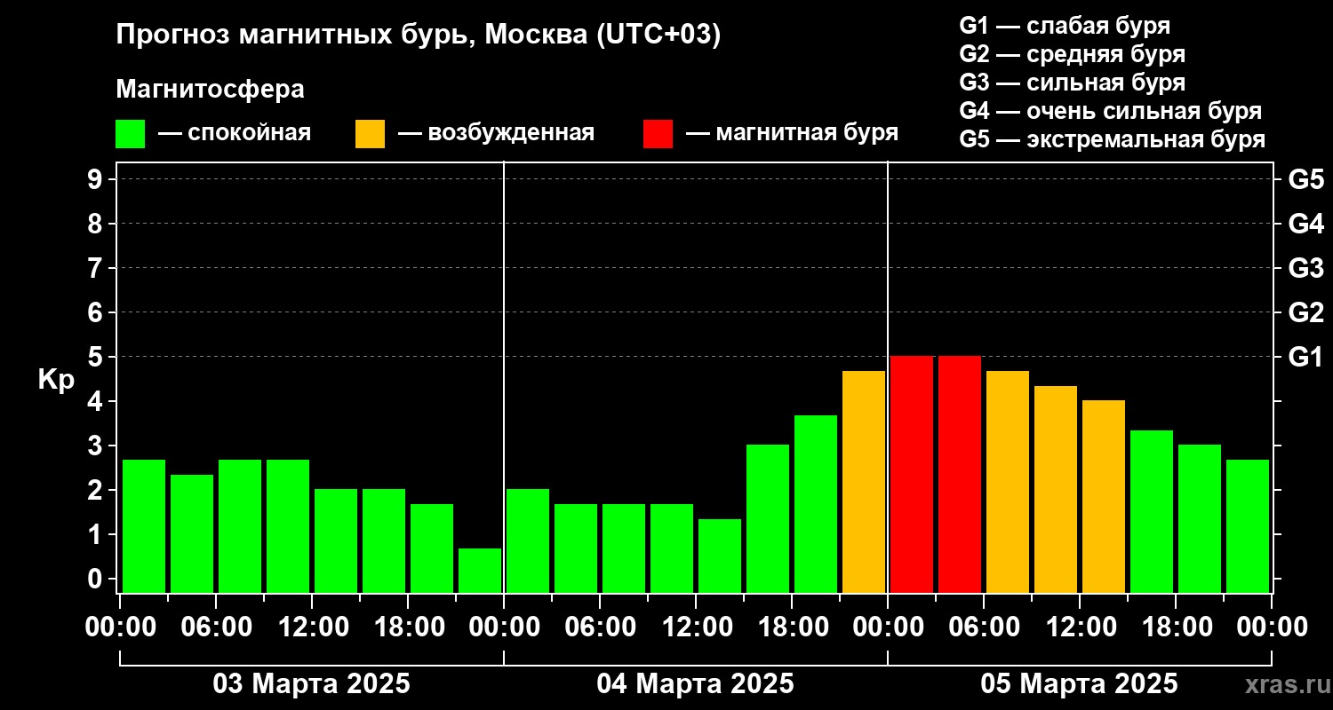 По прогнозам, плазменное облако придёт к Земле около 19 часов по московскому времени. Геомагнитные возмущения начнутся во вторник в районе 20-21 часа. Ожидается, что буря будет слабого и среднего уровня.