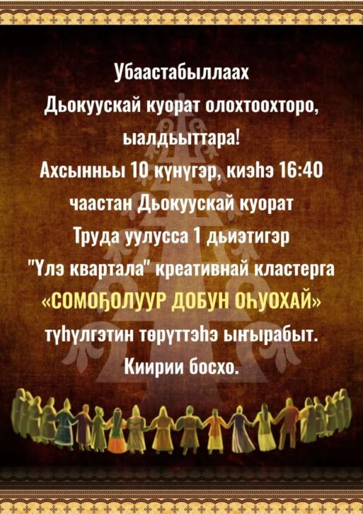 16:40 – 17:00 ч. Завершающий обряд-благопожелание «Сомоҕолуур Добун оһуохай» (1 этаж, EVENT-пространство)