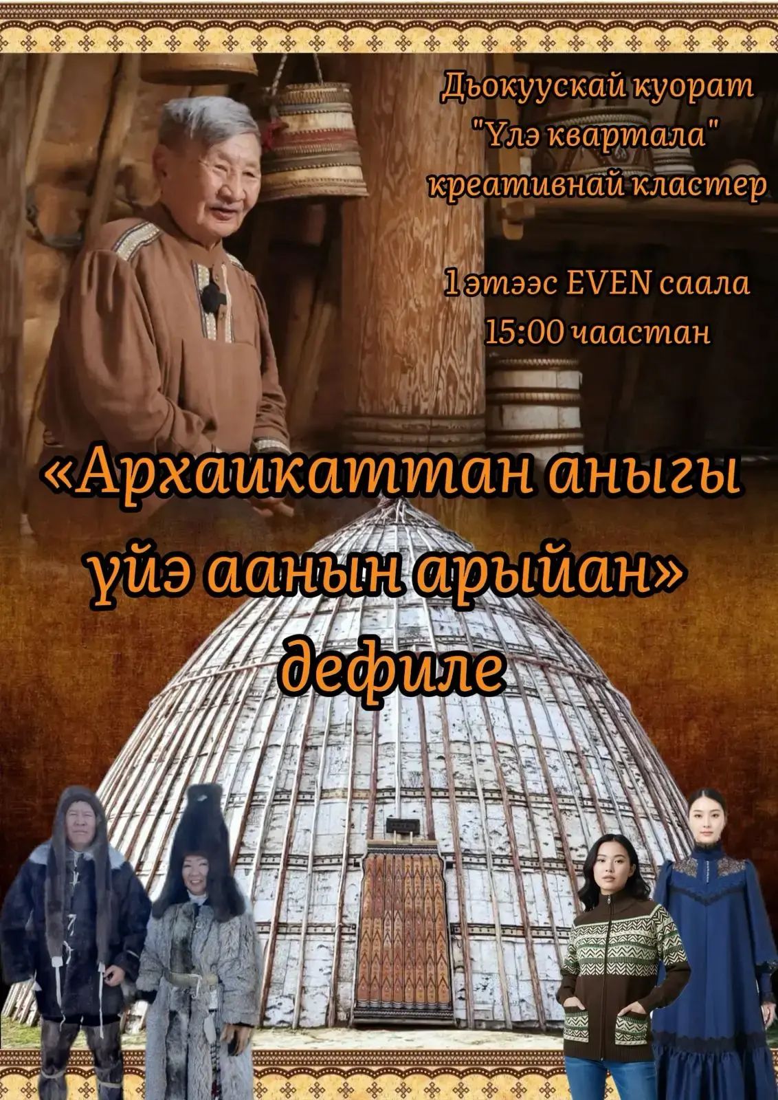 15:00 – 16:00 ч. Дефиле якутского костюма «От архаики к современности» (1 этаж, EVENT-пространство)