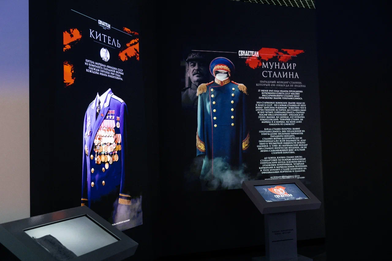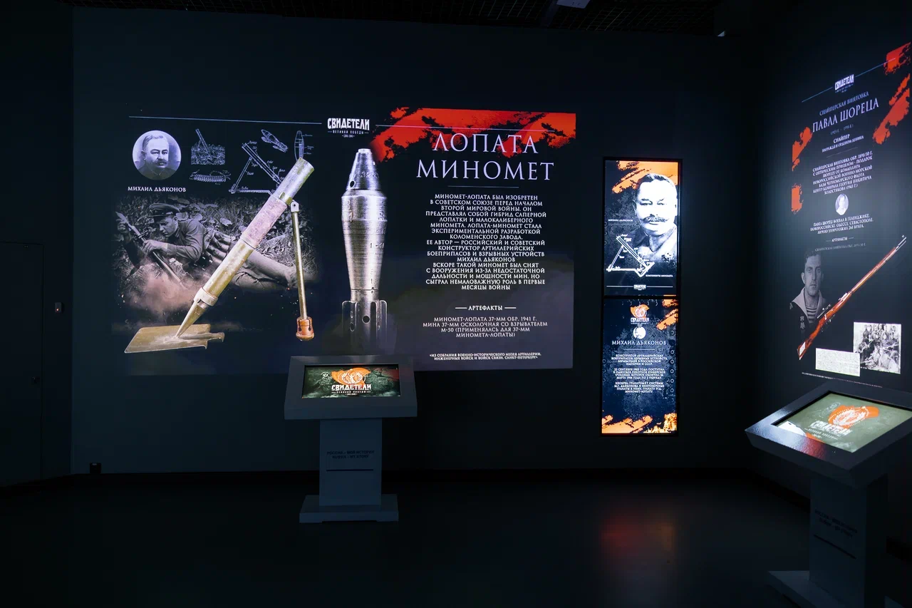 Среди мультимедийных жемчужин, несущих правду о Великой войне – меч Сталинграда, медицинский чемодан Магды Геббельс, образцы фуражки и парадного мундира И.В. Сталина для Парада Победы 24 июня 1945 г., необычные средства ведения войны и другие экспонаты. Отдельного внимания заслуживают вдохновляющие примеры подвига Алексея Маресьева и достижения летчицы Лидии Литвяк, рекорды снайперов-подруг Натальи Ковшовой и Марии Поливановой и др.